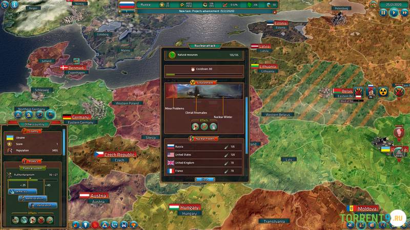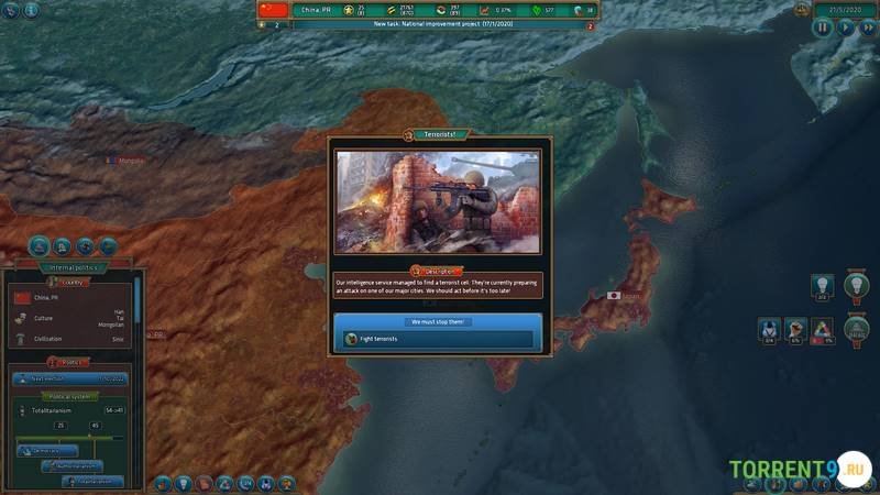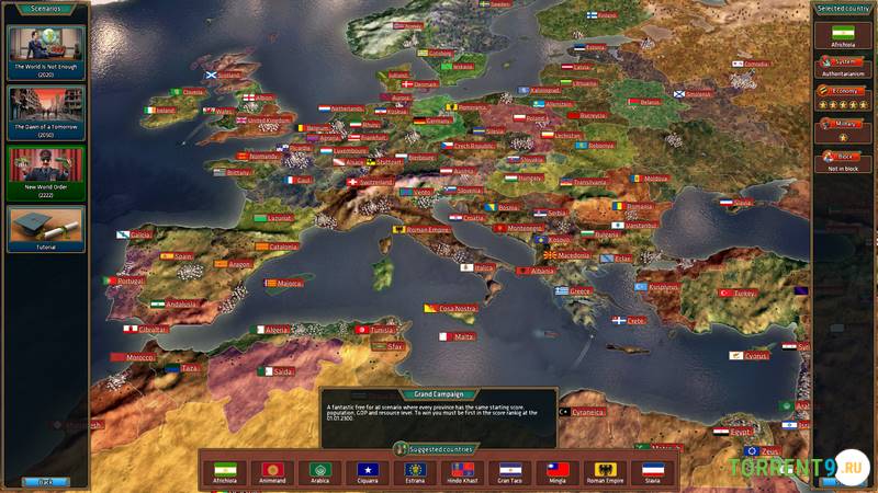 В игре вы столкнетесь с множеством задач, разнообразных по сложности и направлению. Сначала вам предстоит выбрать идеологию: демократию, тоталитаризм или другую форму правления. Далее необходимо организовать внутренние дела своего государства, завоевать уважение, вывести страну и свое имя на мировую политическую арену, стремясь к доминированию. Не спешите: каждый шаг требует вдумчивости. От ваших решений будет зависеть репутация, уровень благосостояния населения и общий имидж страны.