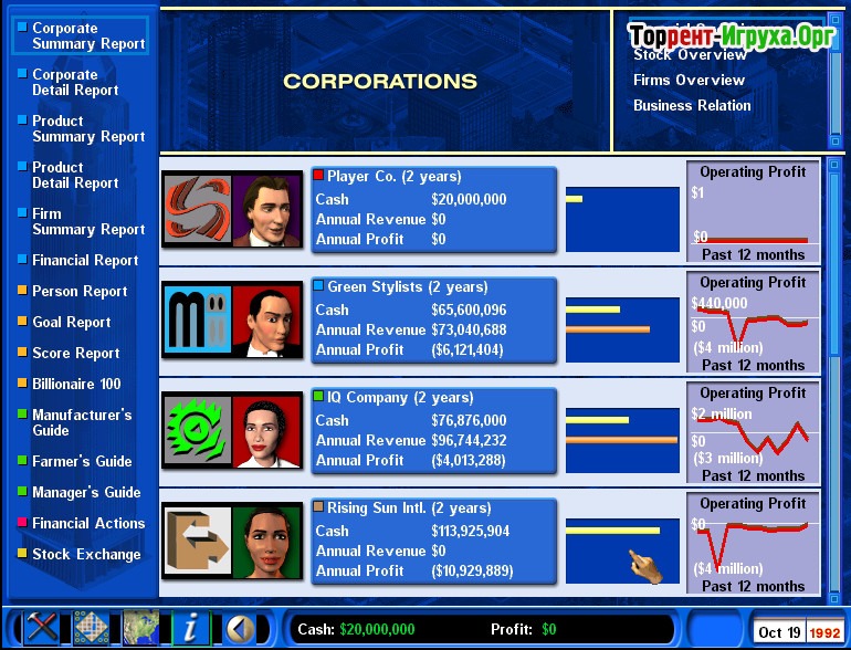 Capitalism 2 от Enlight Software Limited, выпущенная в 2001 году, предлагает уникальную возможность построить и управлять собственной бизнес-империей. Эта экономическая стратегия позволяет погрузиться в реалистичные аспекты предпринимательства, делая процесс сложным и увлекательным одновременно. Управлять корпорацией в игре — это настоящая проверка стратегического мышления и навыков бизнесменов.