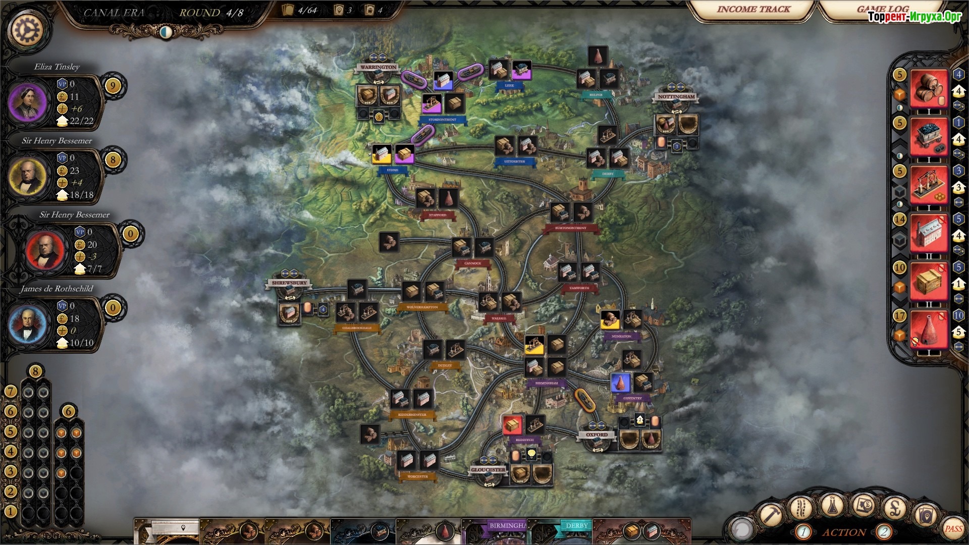 Brass: Birmingham — захватывающая экономическая стратегия от разработчика Cublo, выпущенная в 2021 году. Игра переносит вас в эпоху паровых машин и железных дорог, где предстоит стать пионером промышленного развития. Используя карточную систему, вы сможете эффективно управлять ресурсами и развивать свое предприятие, увеличивая богатство и укрепляя позиции на рынке.
