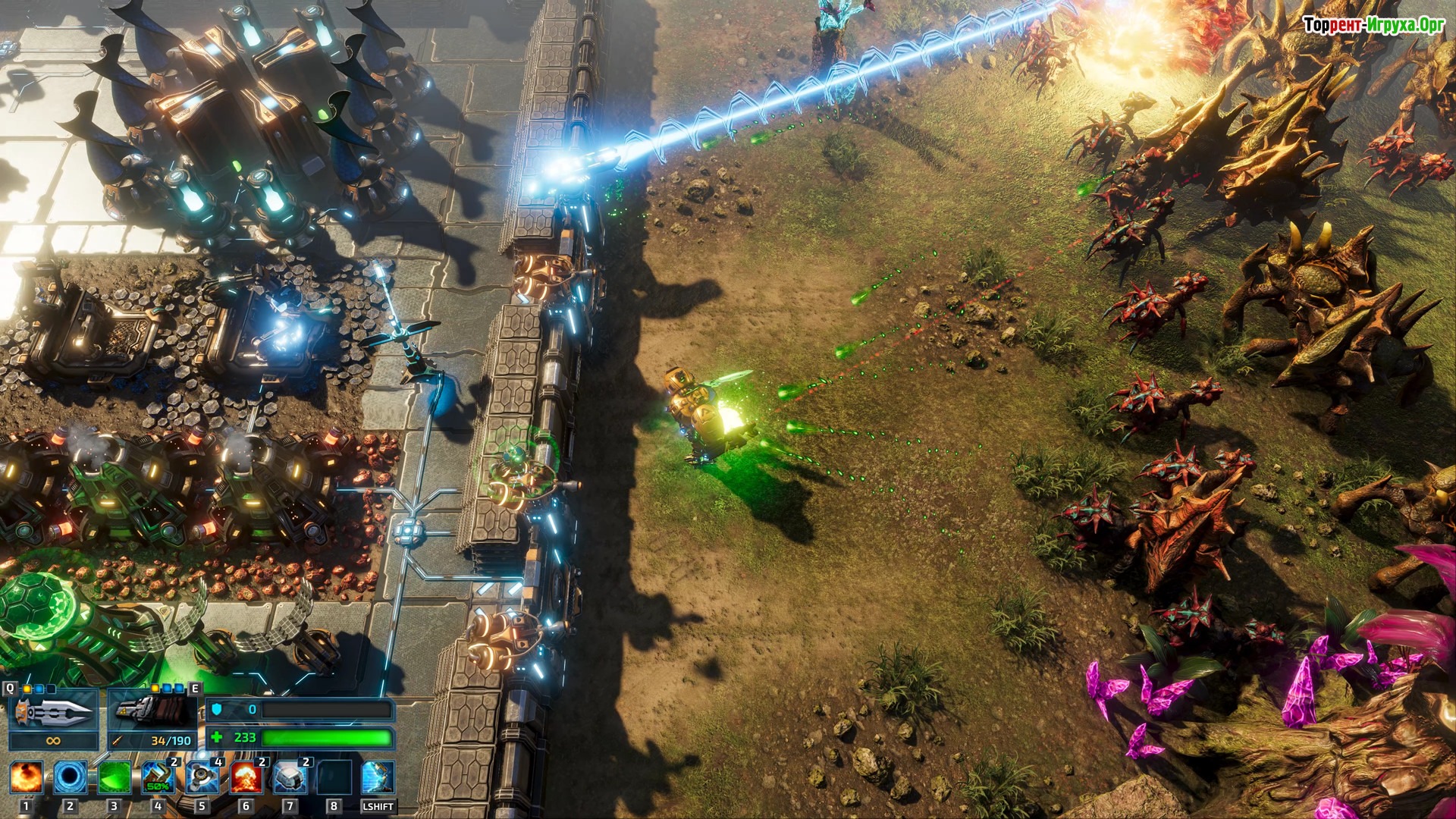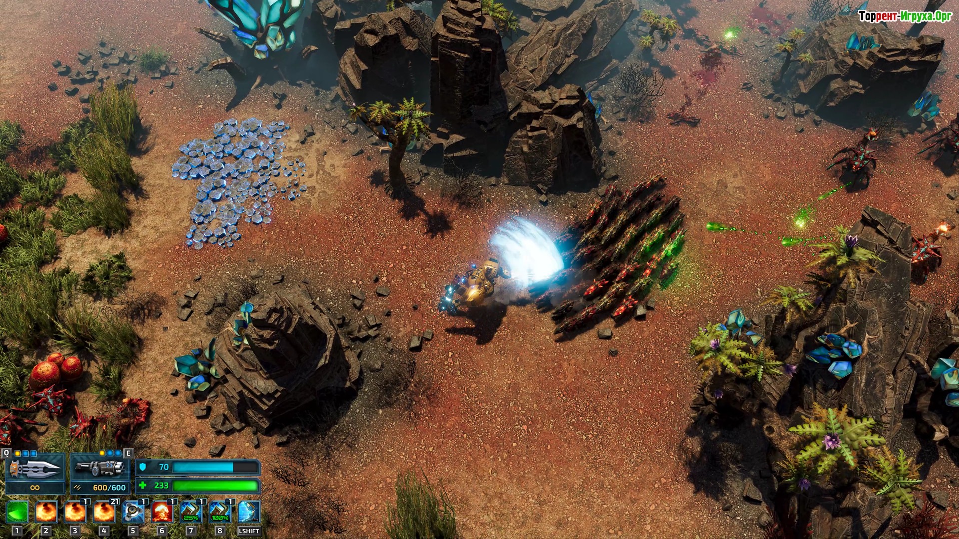 Строишь базу попутно выполняя задания на чужой планете и между заданиями волнами нападают жуки