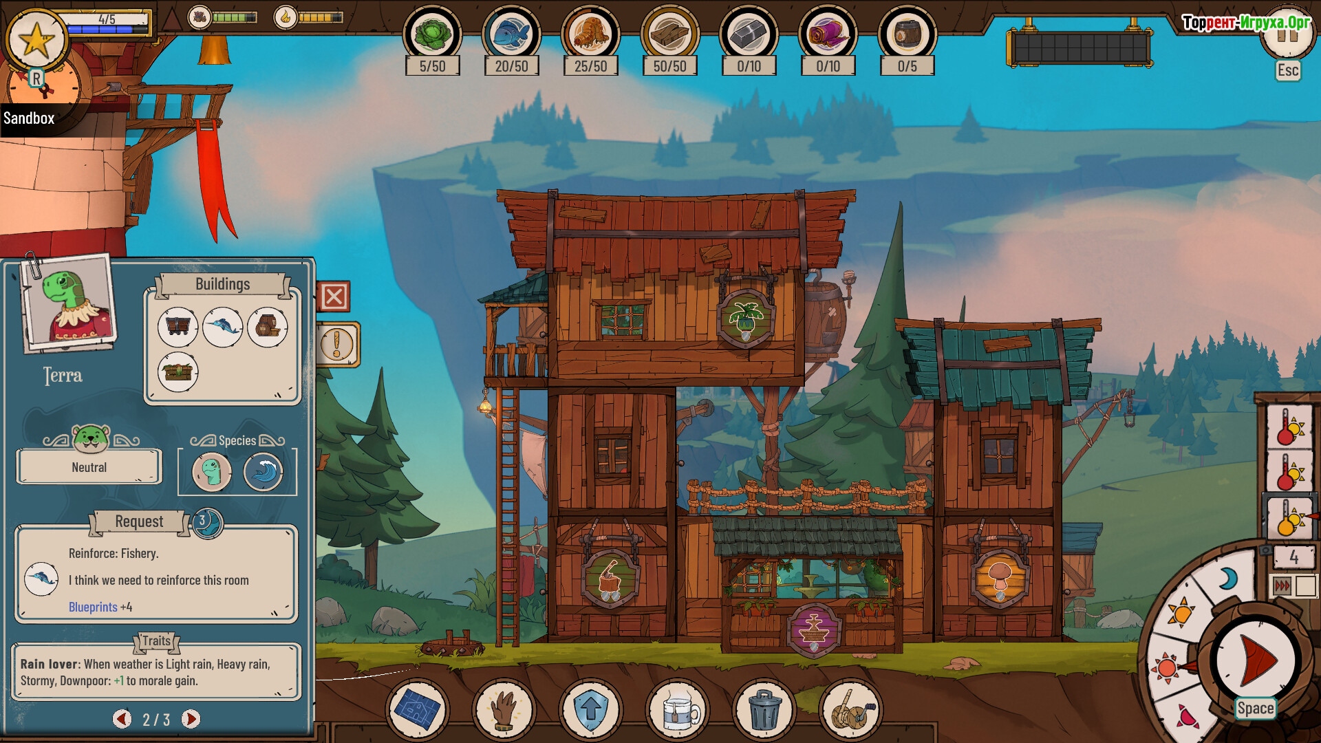 Главной особенностью Diluvian Winds является поэтажное строительство башенного типа, что позволяет эффективно использовать ограниченное пространство. Вы будете возводить этажи один за другим, укрепляя их и тщательно планируя расположение, чтобы противостоять стихии. Такая механика добавляет стратегическую глубину, заставляя продумывать каждый шаг для максимальной защиты вашего убежища и обеспечения выживания.