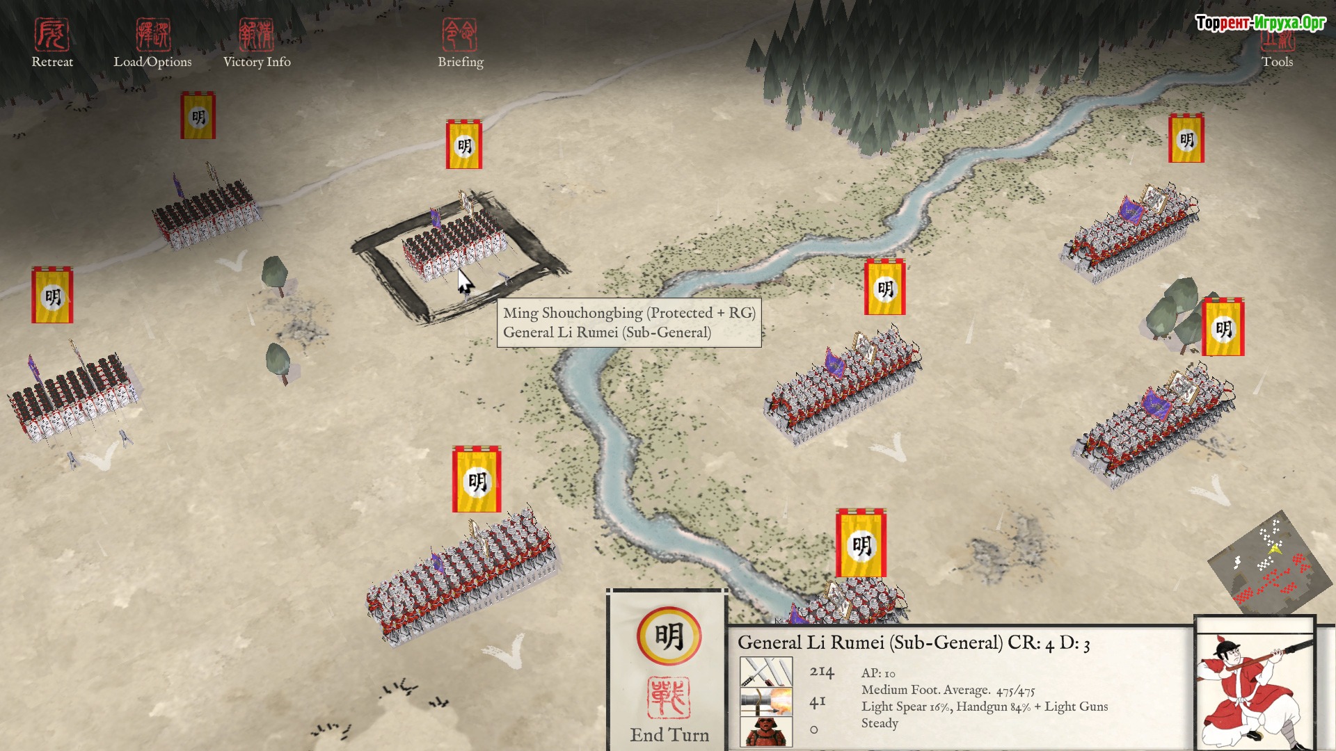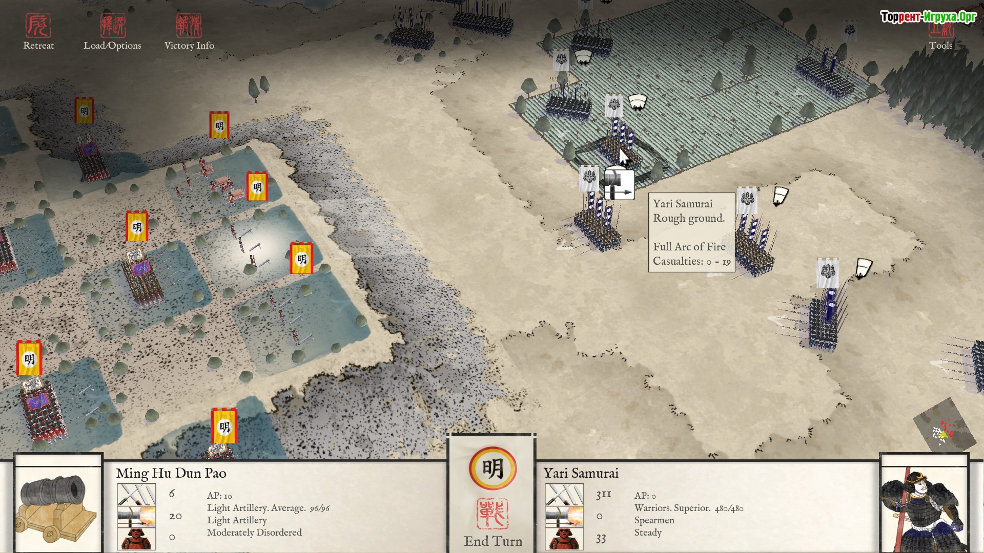 Игровой процесс сосредоточен на управлении отрядом, где каждая единица характеризуется своими тактическими особенностями и уровнем организации. Множество сценариев, основанных на реальных событиях, позволяют полноценно погрузиться в средневековые конфликты и стратегии Восточной Азии XVI века.