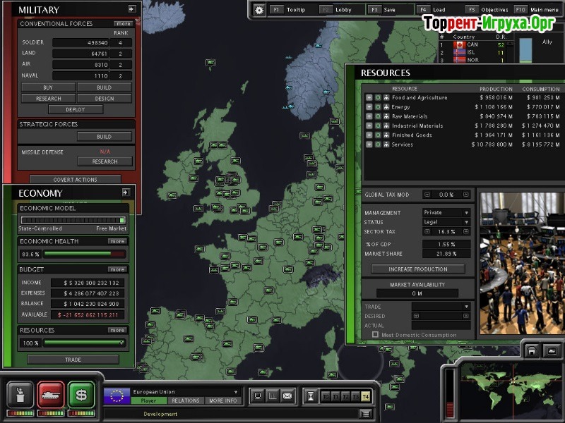 В управлении вы будете контролировать различные виды войск, расставляя их по ключевым точкам и отдавая приказы. Игра охватывает все аспекты управления — от экономики и политики до дипломатии и военных операций. Ваши соперники — управляемые искусственным интеллектом независимые страны с уникальными целями и законами, что добавляет сложности и реализма. Благодаря обучающейся логике врага, побеждать в войнах и переговорах придется с максимальным вниманием и мастерством.