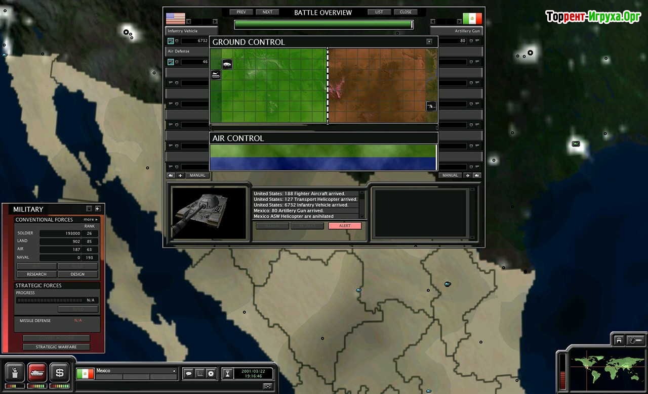 SuperPower 2 — это глобальная стратегия от разработчика GolemLabs, выпущенная в 2004 году, которая дает игроку контроль над одним из более чем 40 доступных государств. С первых шагов вам предстоит создавать собственную стратегию и продуманно распределять ресурсы, чтобы обеспечить стабильное развитие своей страны. Планирование действий и тактика помогут избежать ошибок и эффективно вести государство к вершинам мирового влияния.