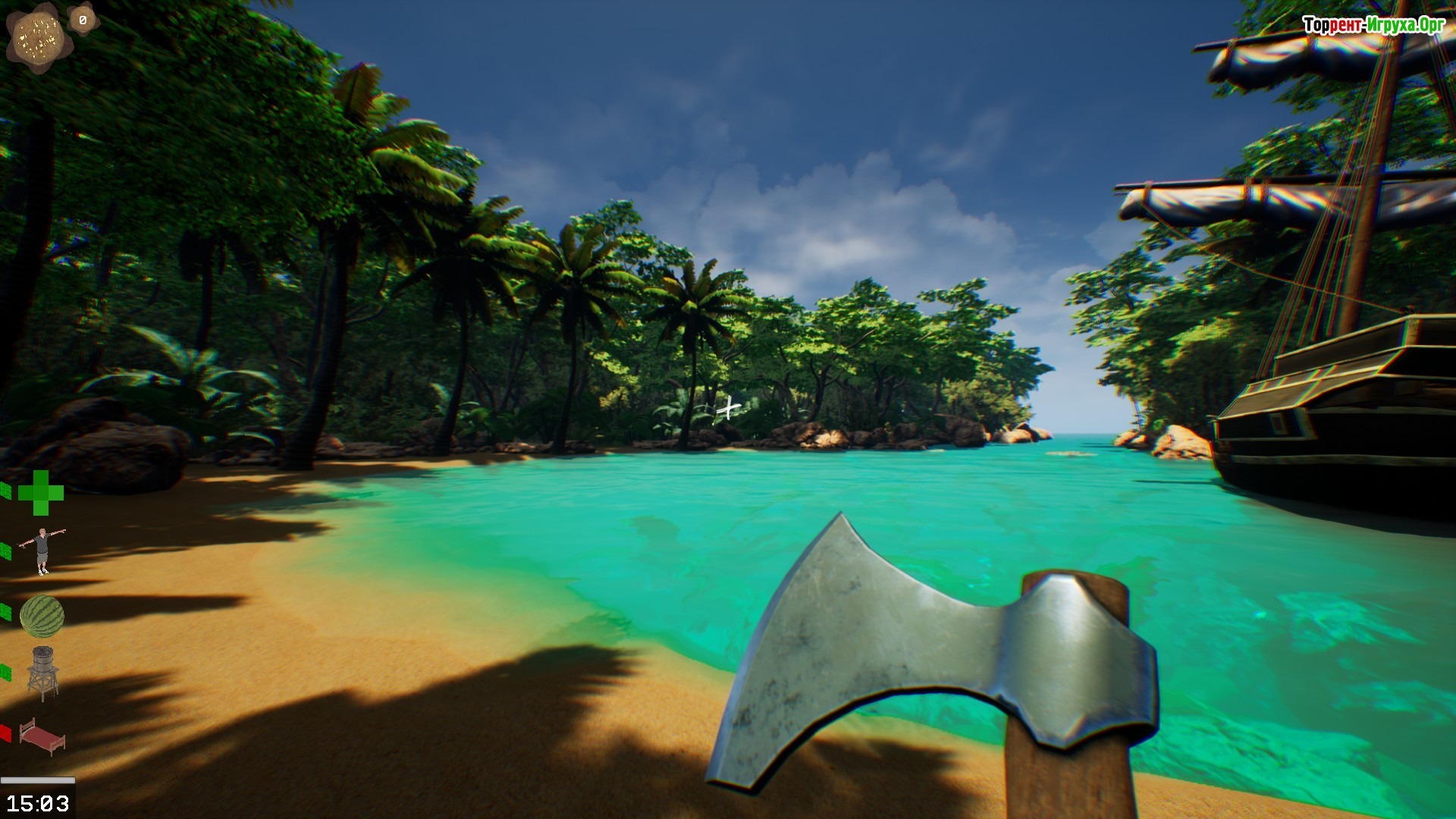 Игровой процесс начинается с прибытия на неизвестный берег, где необходимо исследовать окрестности, собирать ресурсы и мастерить разнообразные предметы. Использование инструментов, таких как топор и кирка, существенно облегчает добычу древесины и руды. Для защиты от врагов важно создавать оружие и укреплять свою территорию профессионально.