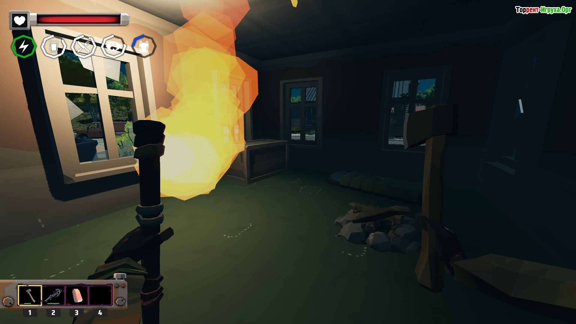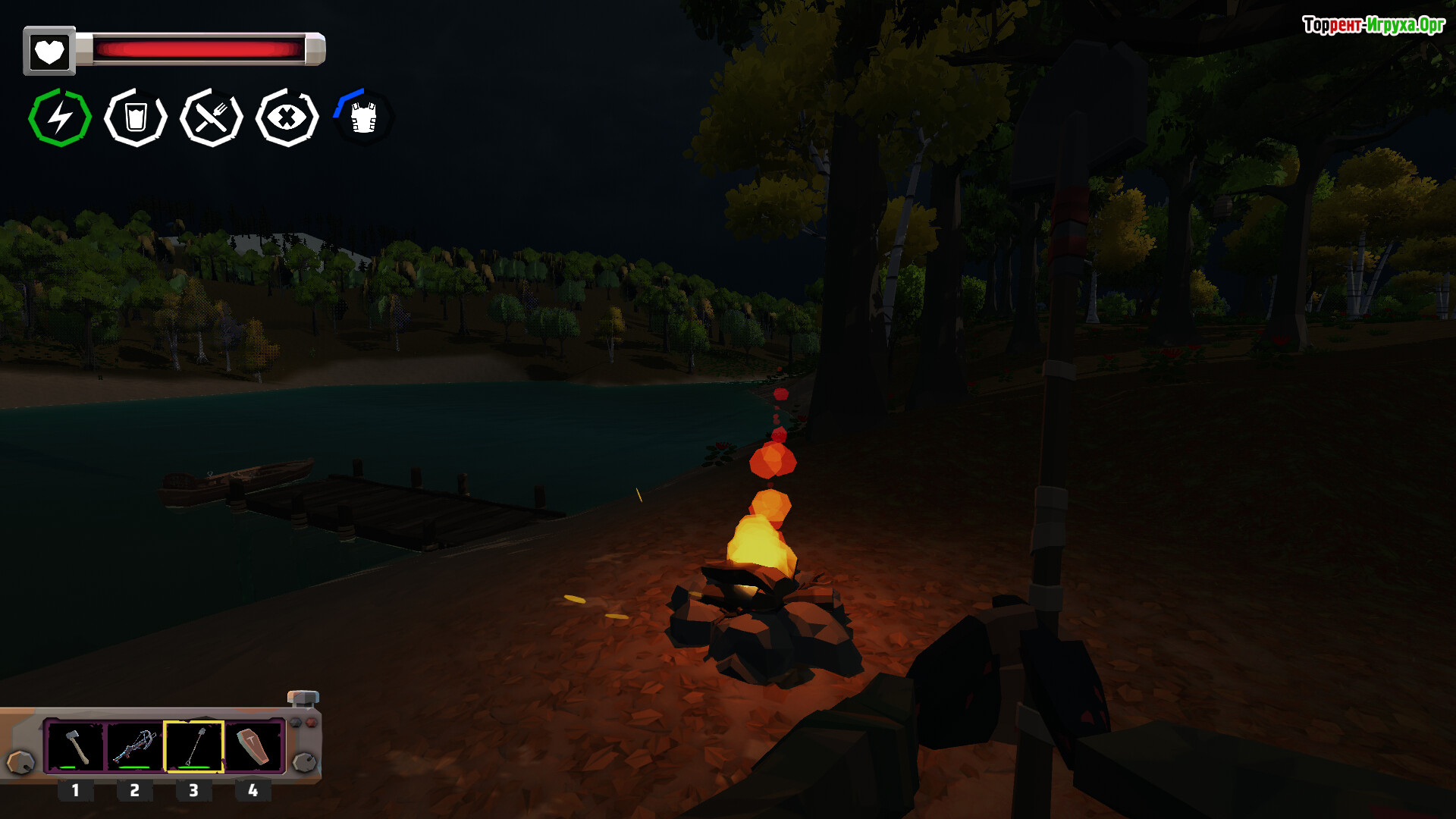 Ресурсы позволяют создавать инструменты, укреплять убежища и расширять арсенал. Сначала в руках лишь топор, но со временем появляются более серьёзные средства защиты. Погодные условия и ночные угрозы усиливают напряжение, а продвижение по острову постепенно раскрывает тёмные секреты, стоящие за катастрофой.