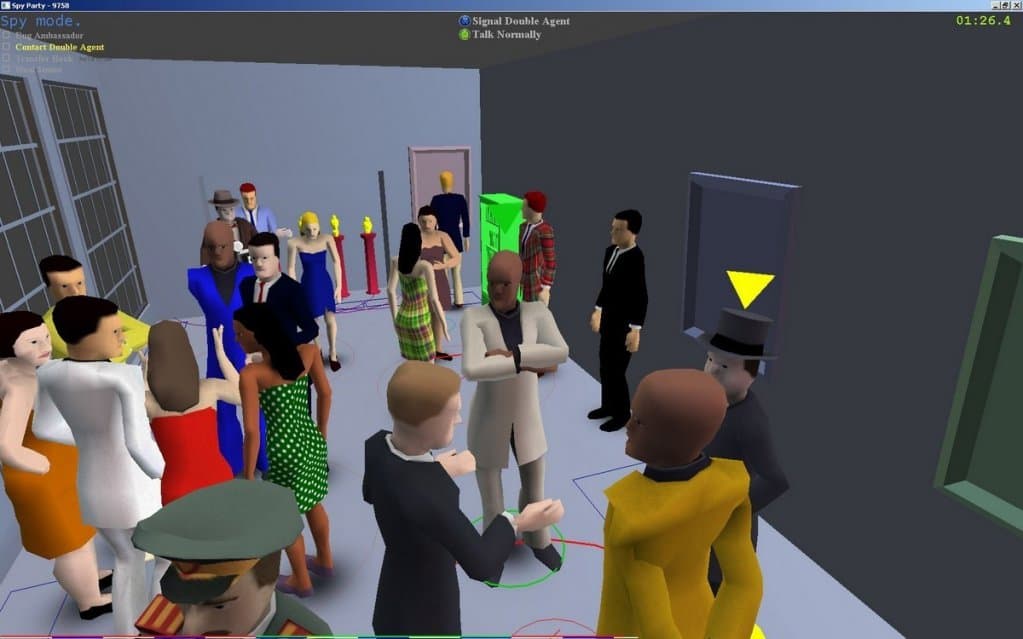 Если вы устали от типичных шпионских игр с неукладывающимся экшеном и непрерывными перестрелками, Spy Party предложит совершенно иной подход. Эта многопользовательская игра, где встречаются всего два игрока, переносит вас на званый прием 1960-х годов. Атмосфера, окружающие предметы и стиль одежды гостей полностью отражают ту эпоху, создавая аутентичный антураж. Главная задача — незаметно собрать важную информацию, скрываясь в толпе.