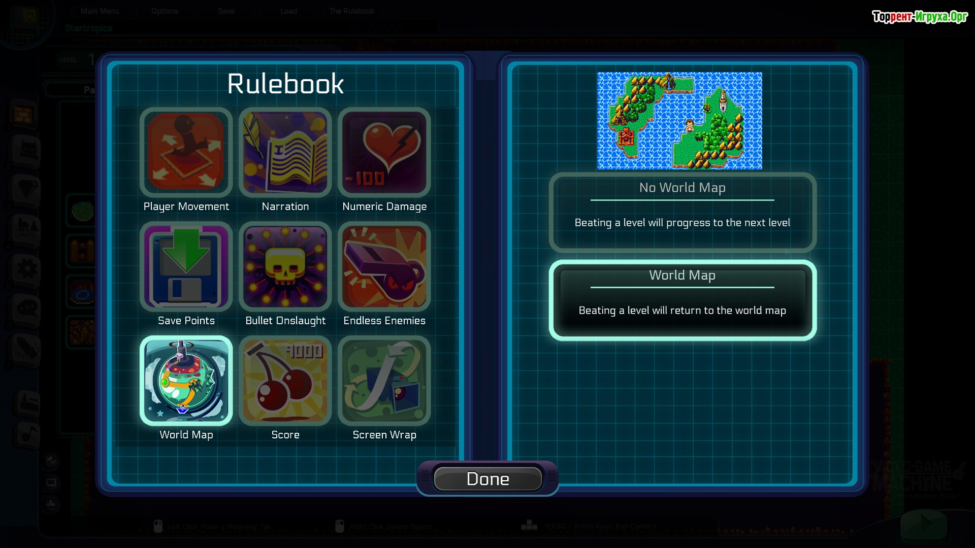В The Video Game Machine представлены вручную созданные шаблонные уровни и три базовых жанра, доступных для выбора. Игроки могут вызывать продвинутый редактор в любой момент игры, что позволяет легко вносить изменения и дополнять контент. Более сотни уникальных объектов и элементов делают игровой мир по-настоящему живым и разнообразным, обеспечивая отличный опыт песочницы для поклонников жанра.