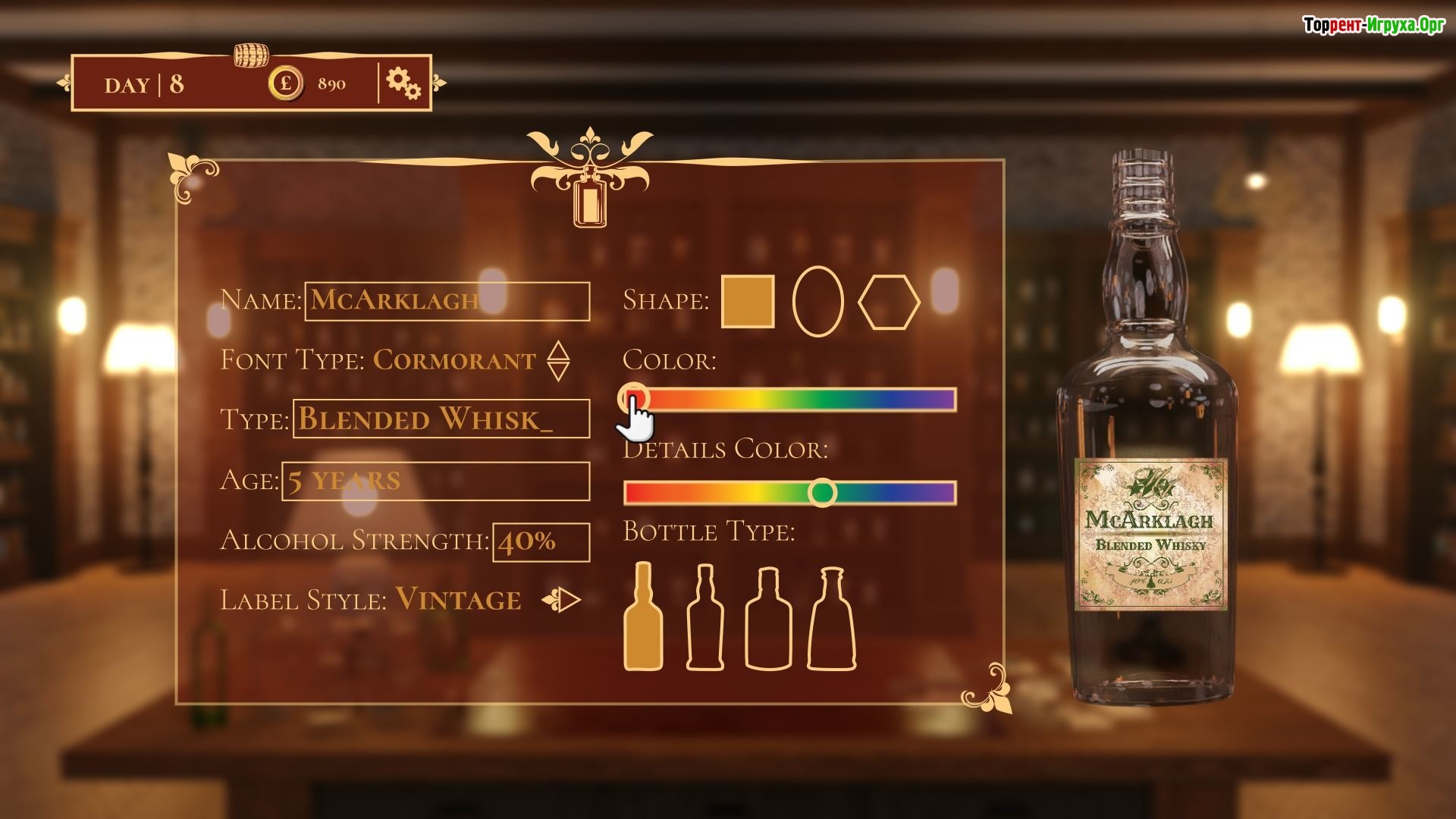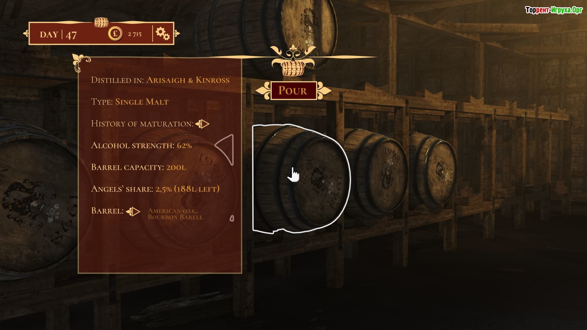 В игре предстоит начать с простого и недорогого ликера, постепенно открывая новые сорта и экспериментируя с ароматами для создания действительно уникального продукта. Развивайте и управляйте своей винокурней, чтобы создать бренд, покоряющий сердца любителей виски по всему миру. Для этого потребуется внимательное смешивание ингредиентов и тщательный подбор сырья.