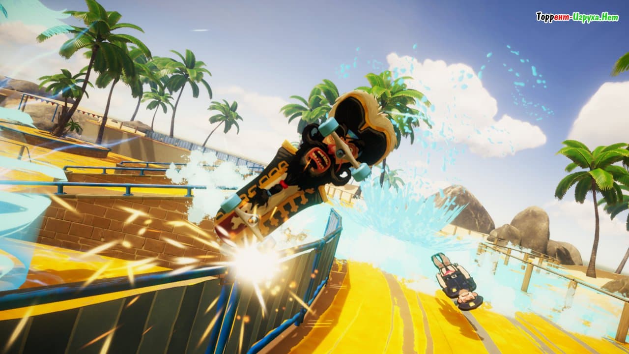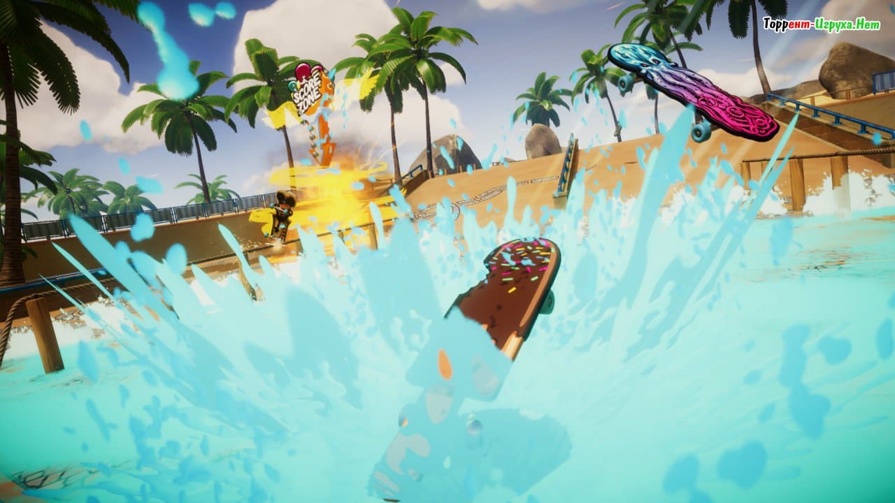Decksplash – это динамичная аркада от известной компании Bossa Studios, создавшей такие проекты, как I am Bread и Surgeon Simulator. Вдохновляясь популярной игрой Splatoon, разработчики перенесли ключевые элементы на платформу PC, предложив игрокам уникальный опыт соревновательных баталий с использованием скейтбордов.