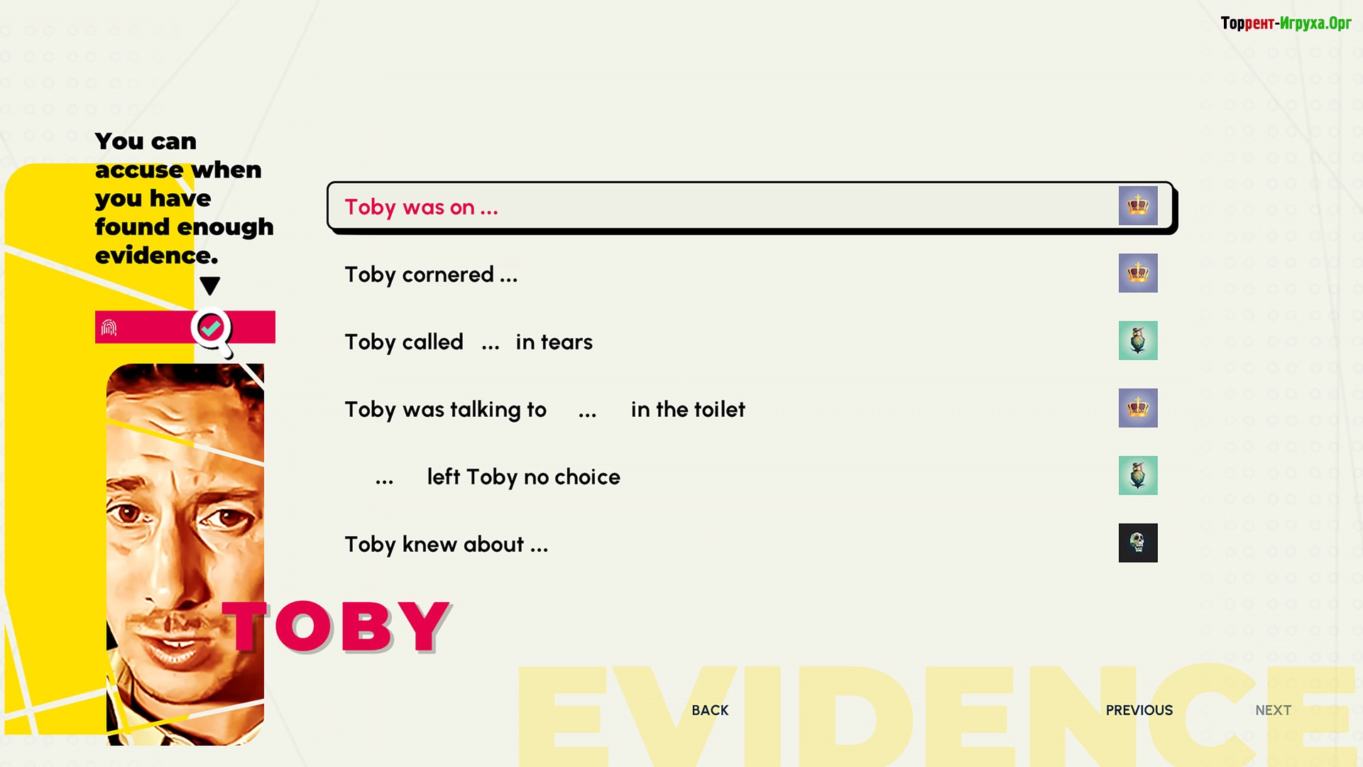 Who Pressed Mute on Uncle Marcus? предлагает игрокам максимальный реализм происходящего и насыщенную атмосферу, делая каждый диалог и выбор значимыми. Перед началом расследования рекомендуется скачать игру через торрент бесплатно на русском языке, чтобы полностью окунуться в интригующую историю и испытать себя в роли детектива.