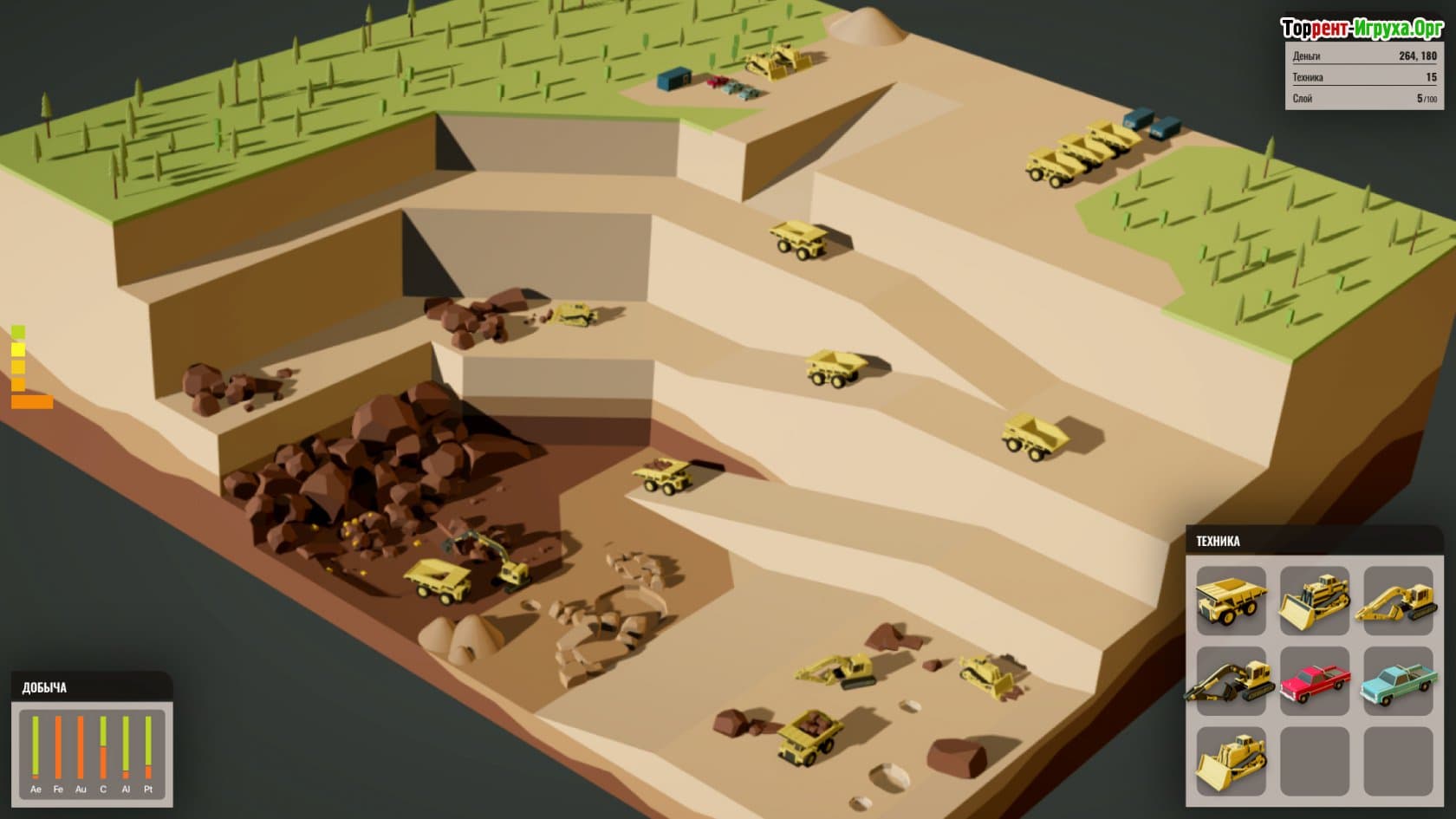 Opencast Mining предлагает вам примерить на себя роль управляющего карьером, где необходимо эффективно координировать работу команды и обеспечивать качественную добычу полезных ископаемых. Скачать Opencast Mining торрент станет первым шагом к погружению в управление карьером, где важна не только стратегия, но и умение справляться с возникающими трудностями.