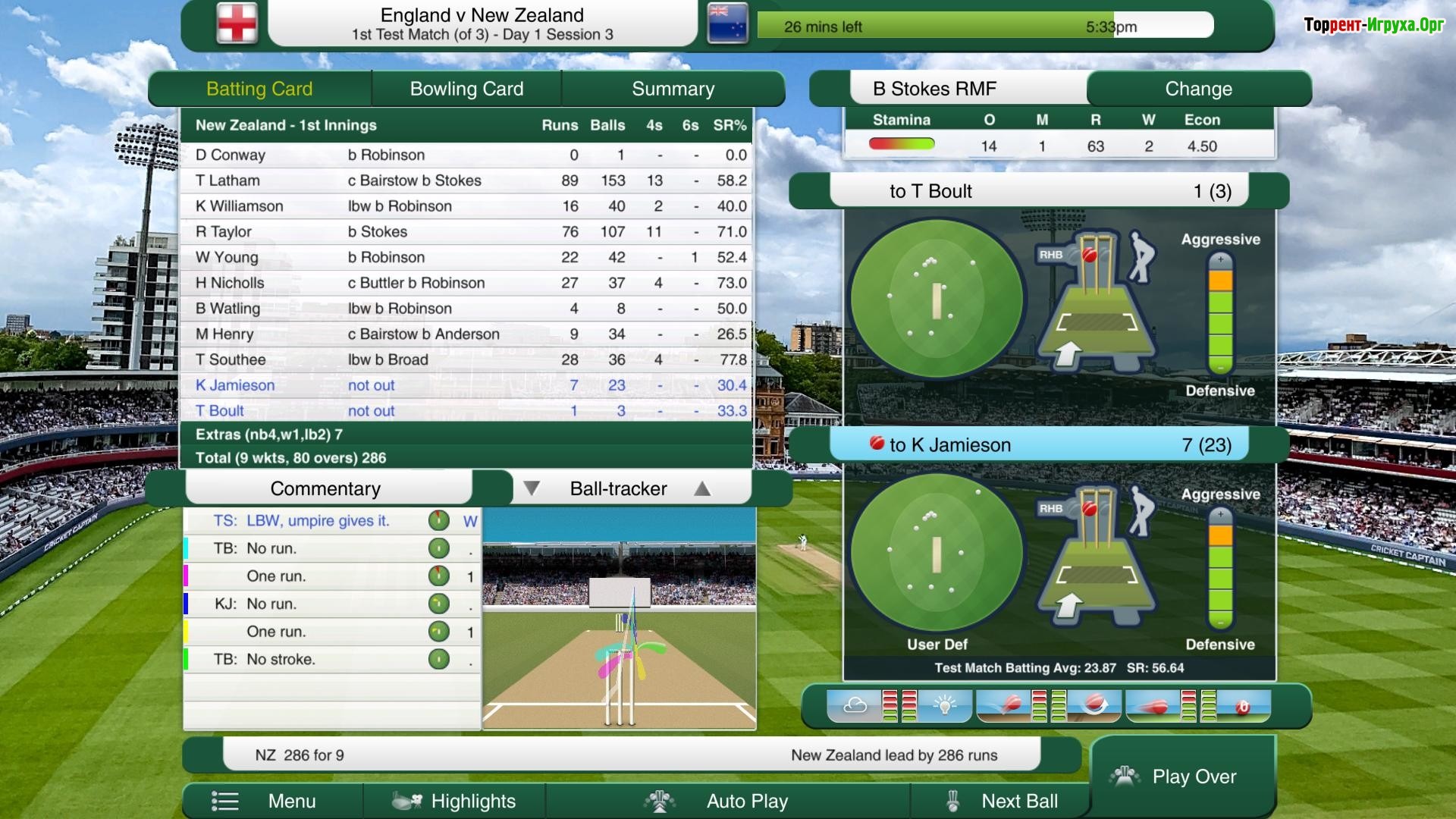 Игра отличается детальной проработкой правил и реалистичным изображением крикета. Вам предстоит делать выбор среди спортсменов, тренировать их и проводить замены в нужный момент. Изучение всех нюансов правил помогает стать более эффективным капитаном и вывести команду на первое место в чемпионате, завоевывая звание сильнейших в этом увлекательном спортивном симуляторе.