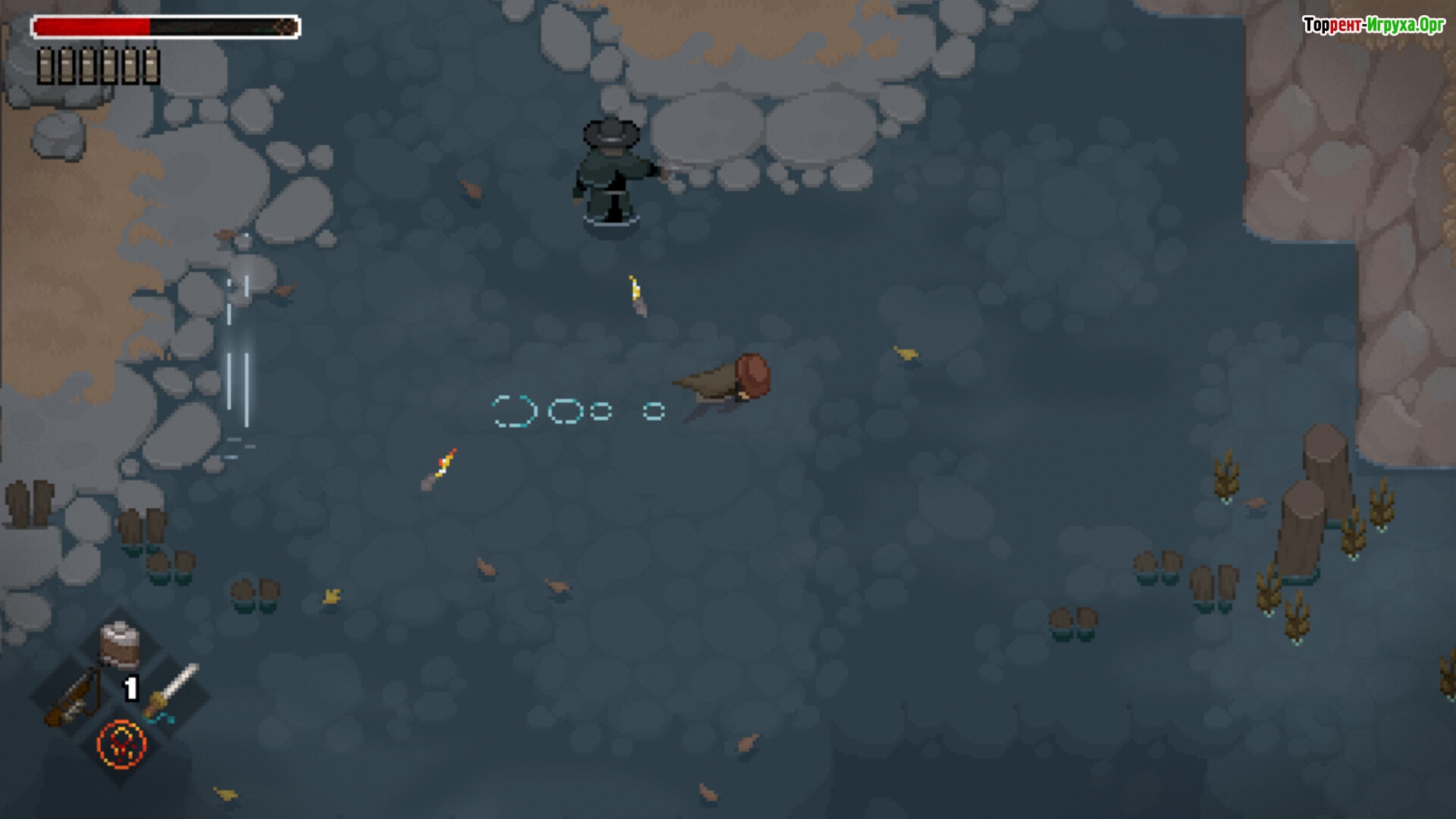 Бои в Tombwater требовательны и беспощадны, требуя от игрока умелого сочетания огнестрельного оружия, холодного оружия, магии и проклятых артефактов. Каждая битва требует стратегического подхода, где удар саблей может служить прелюдией к заклинанию, а дробовик становится спасением в узких шахтных коридорах. Ошибки обходятся дорого, а каждое сражение забирает ценные ресурсы и кусочек вашего рассудка.