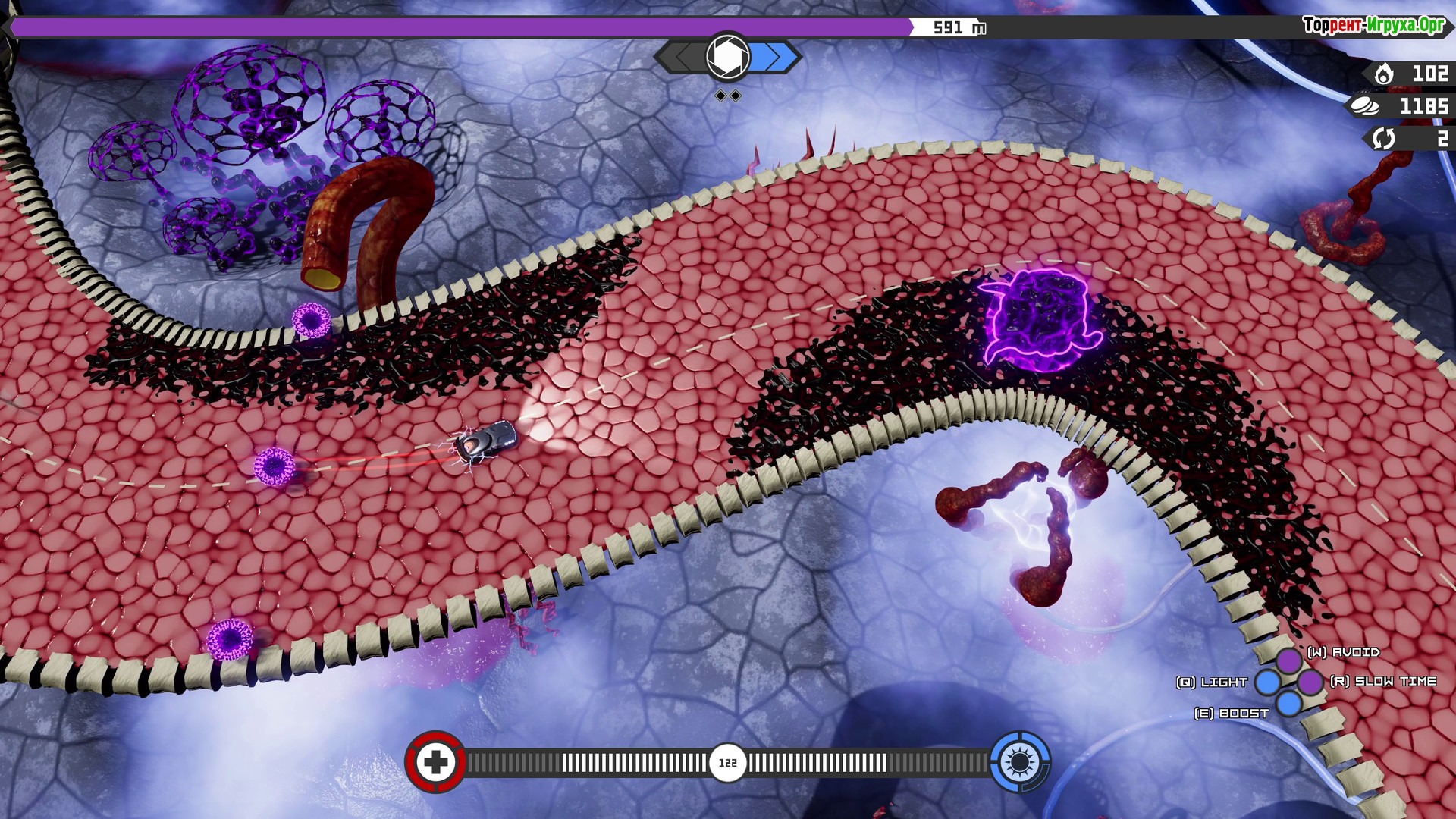 Игра предлагает динамично изменяющееся окружение, которое реагирует на действия игрока, создавая новые вызовы. По мере передвижения по трассе вы можете использовать прыжки и маневры, чтобы улучшать технические характеристики автомобиля и преодолевать все более сложные препятствия. Однако зомби-рука, выступающая в роли местного боса, тоже развивается, усложняя гонку. Трасса подстраивается под ход событий, превращаясь в ледяные платформы или стены, способные двигаться, что требует от вас быстрой реакции и адаптации для сохранения жизни и укрепления авто.