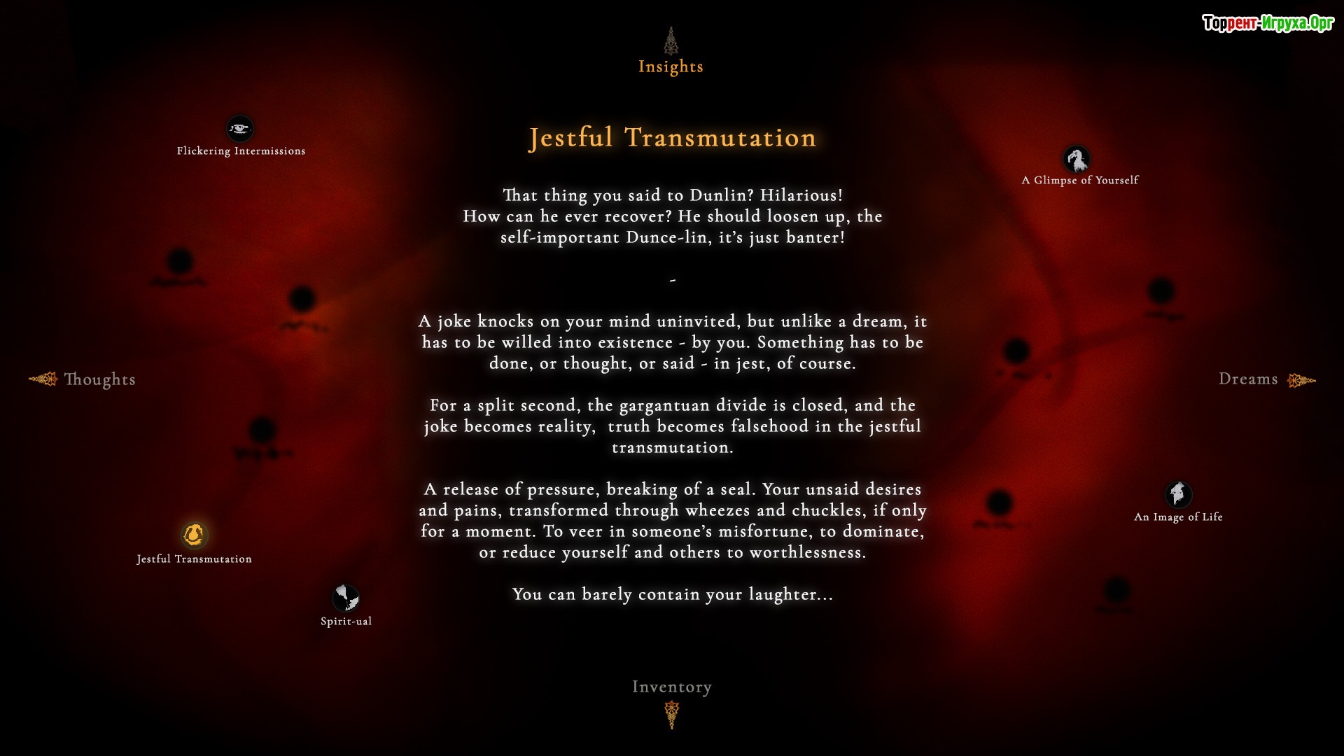 Особенностью проекта стала экспериментальная «Insight System», позволяющая глубже понять внутренний мир героя и добавить интерактивности в игровой процесс. В основе повествования лежит ярко прописанный персонаж Данлин — молодой человек с твёрдыми моральными устоями и религиозными взглядами, чья история раскрывается в ходе многочисленных диалогов с возможностью разнообразных ответов и направлений развития событий.