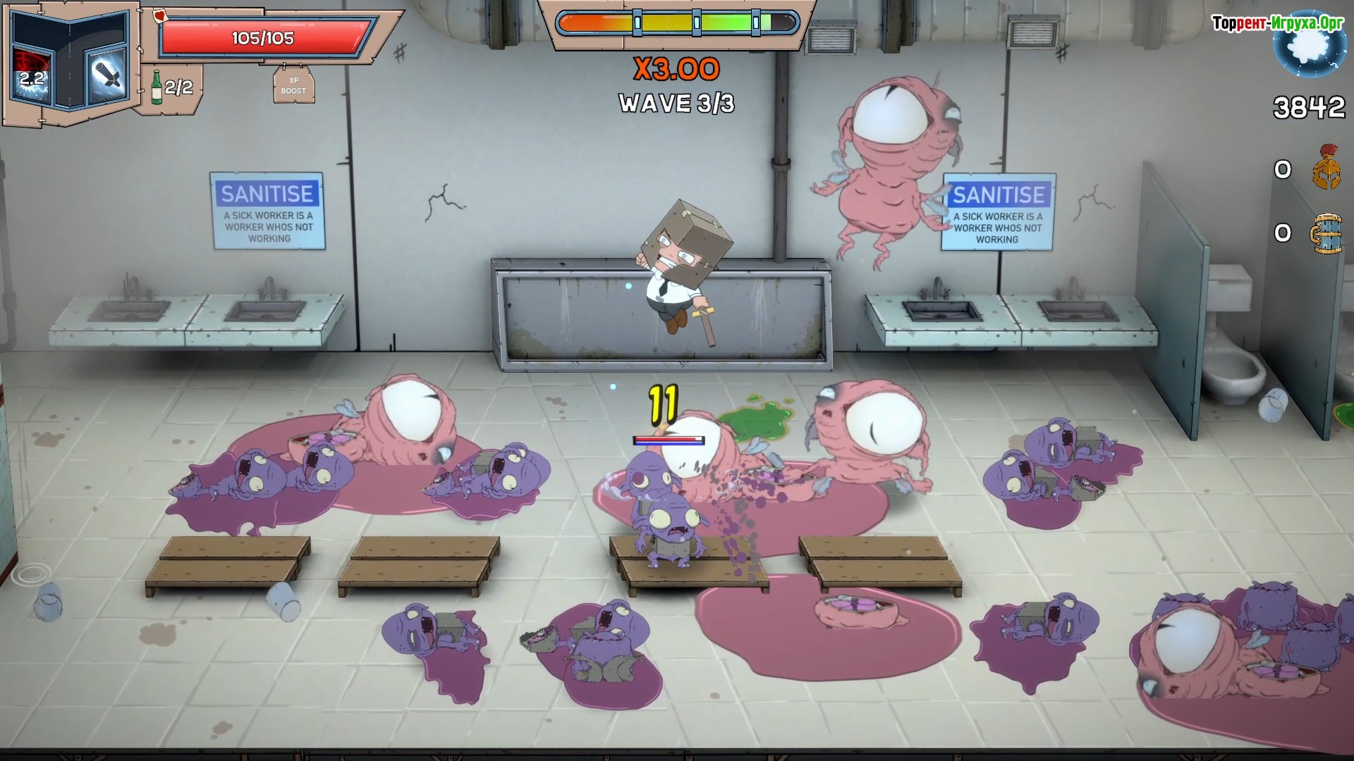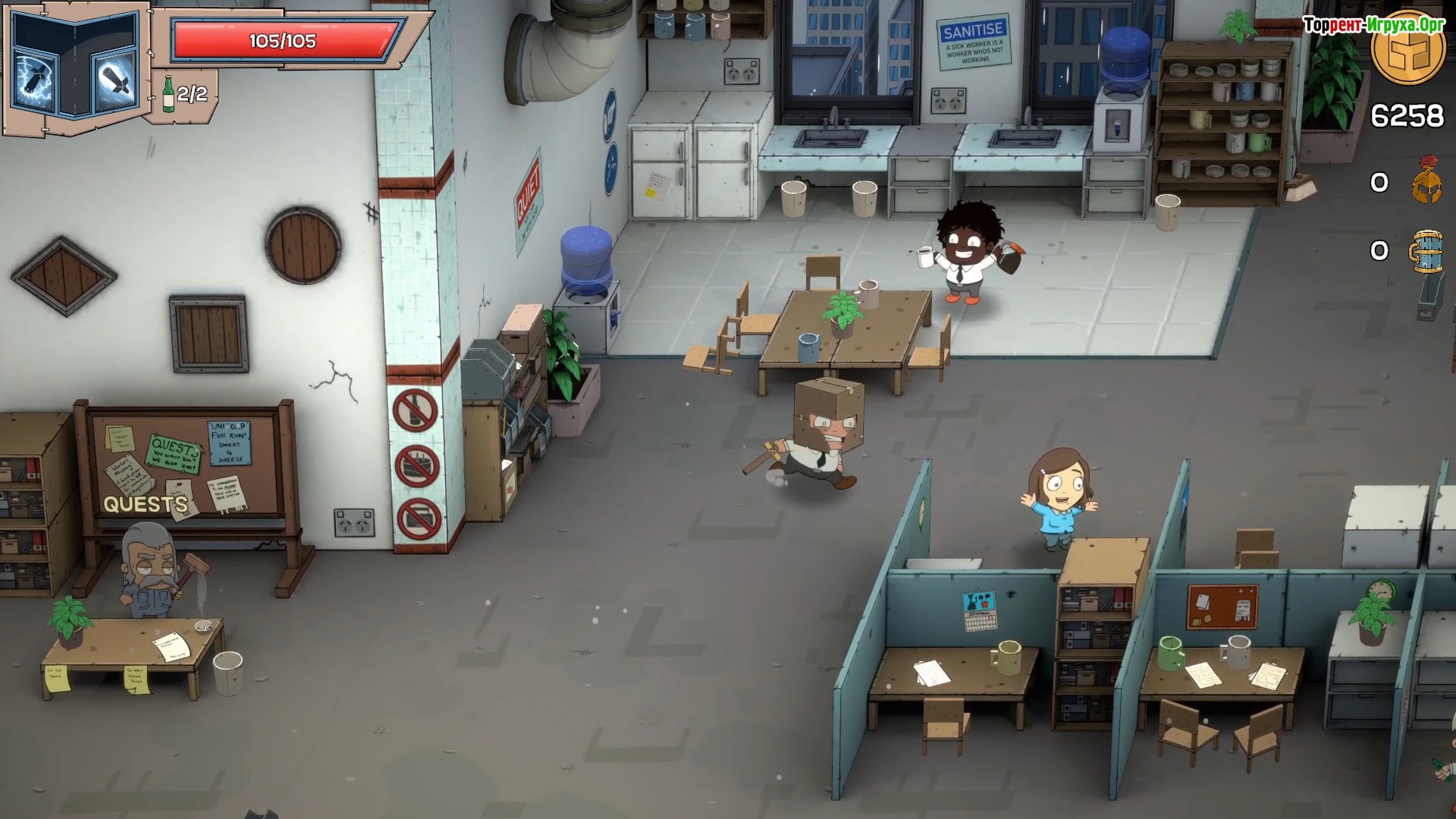Приключение разворачивается в офисной башне, где необходимо продвигаться через множество уровней, исследуя различные отделы и сражаясь с разнообразными врагами. Ваша задача — дойти до финала и победить жестокого генерального директора, угрожающего всей организации. Мастерство стратегического мышления и внимательность помогут в прохождении уникальных сражений, которые сочетают веселье и сложность, захватывая с первых минут игрового процесса.
