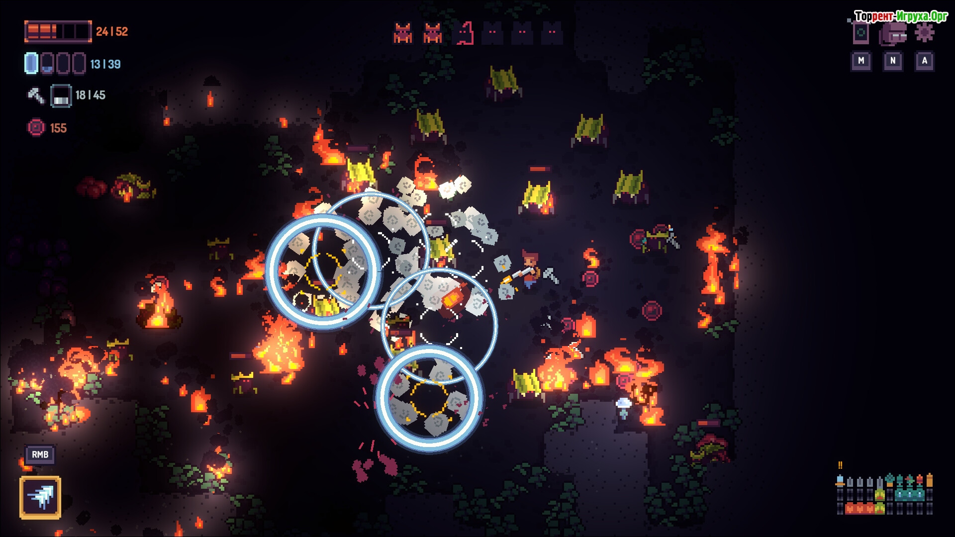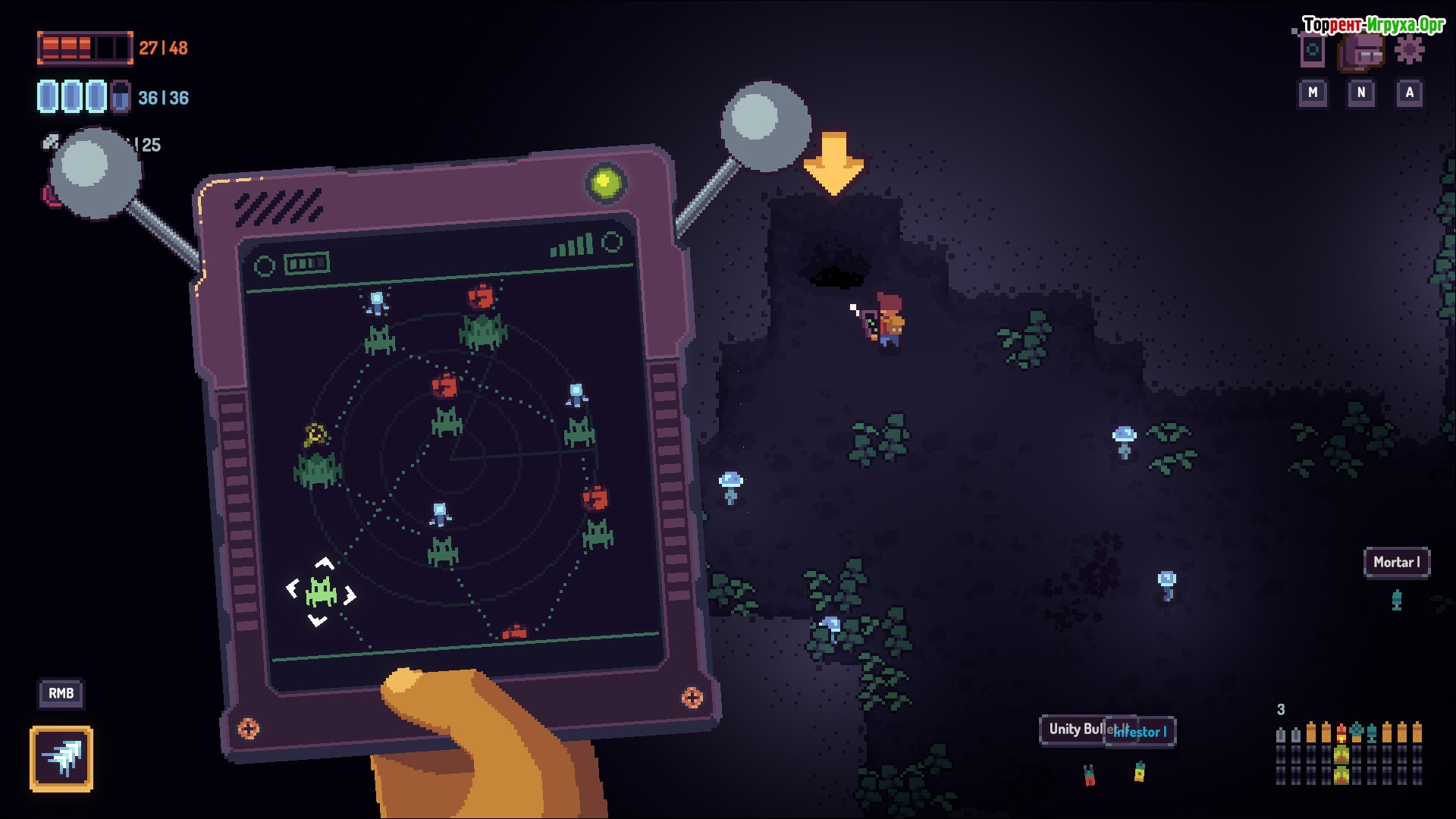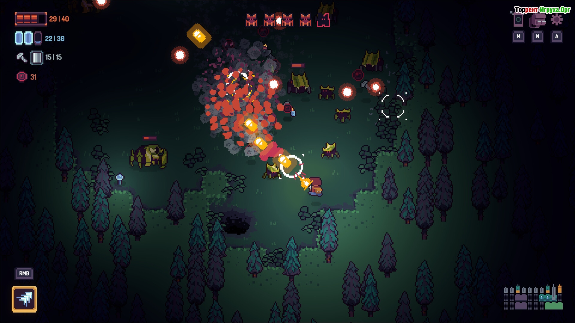 Кроме сражений, важной частью геймплея является сбор остатков павших врагов для создания новых пуль и моделей. Это добавляет глубину и разнообразие, позволяя искать и формировать самые эффективные комбинации. Случайно сгенерированные пещеры делают каждое прохождение уникальным и увлекательным, поддерживая интерес на протяжении всей игры.