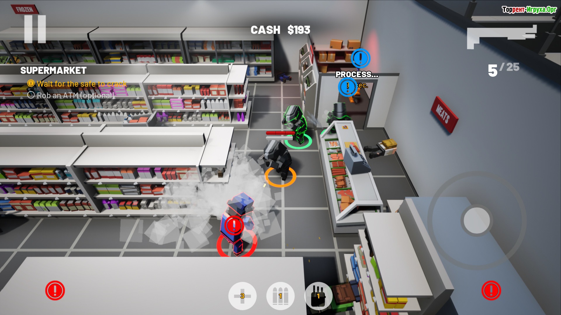 В этой игре вас ждёт высокая динамика и полная свобода выбора стратегий. Разнообразное вооружение и несколько вариантов решения поставленных задач делают игровой процесс насыщенным и многогранным. Успех вашей деятельности будет зависеть не только от количества награбленного, но и от умения эффективно управлять ситуацией, учитывать риски и вовремя принимать решения, что особенно важно в условиях постоянной опасности.