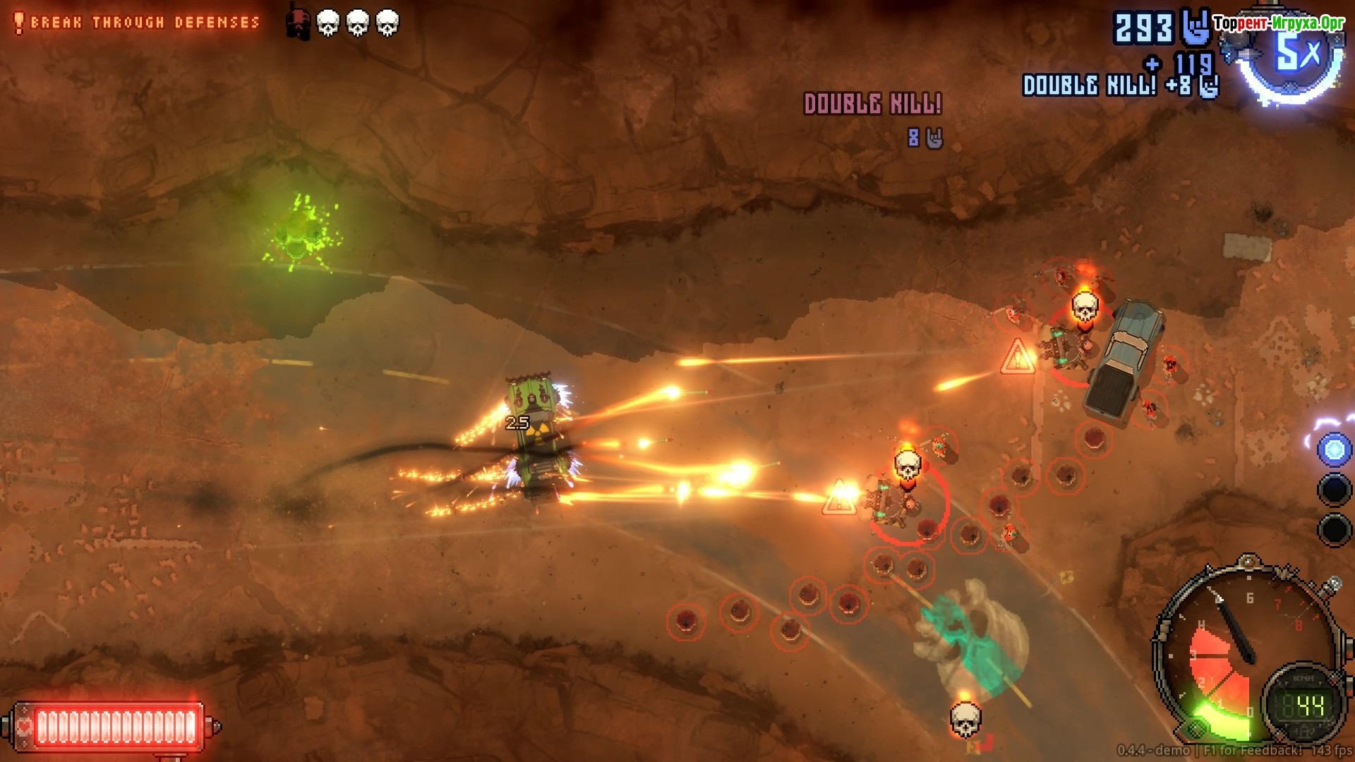Практически весь геймплей FRANZ FURY сосредоточен на управлении боевым автомобилем в режиме с видом сверху, где вас ждёт разнообразие врагов и динамичные миссии. Игра сочетает быстрый темп развития сюжета с классическими механиками выживания, а также предоставляет возможности для прокачки машины и использования различного оружия. Это делает игровой процесс захватывающим и многогранным для всех поклонников жанра.