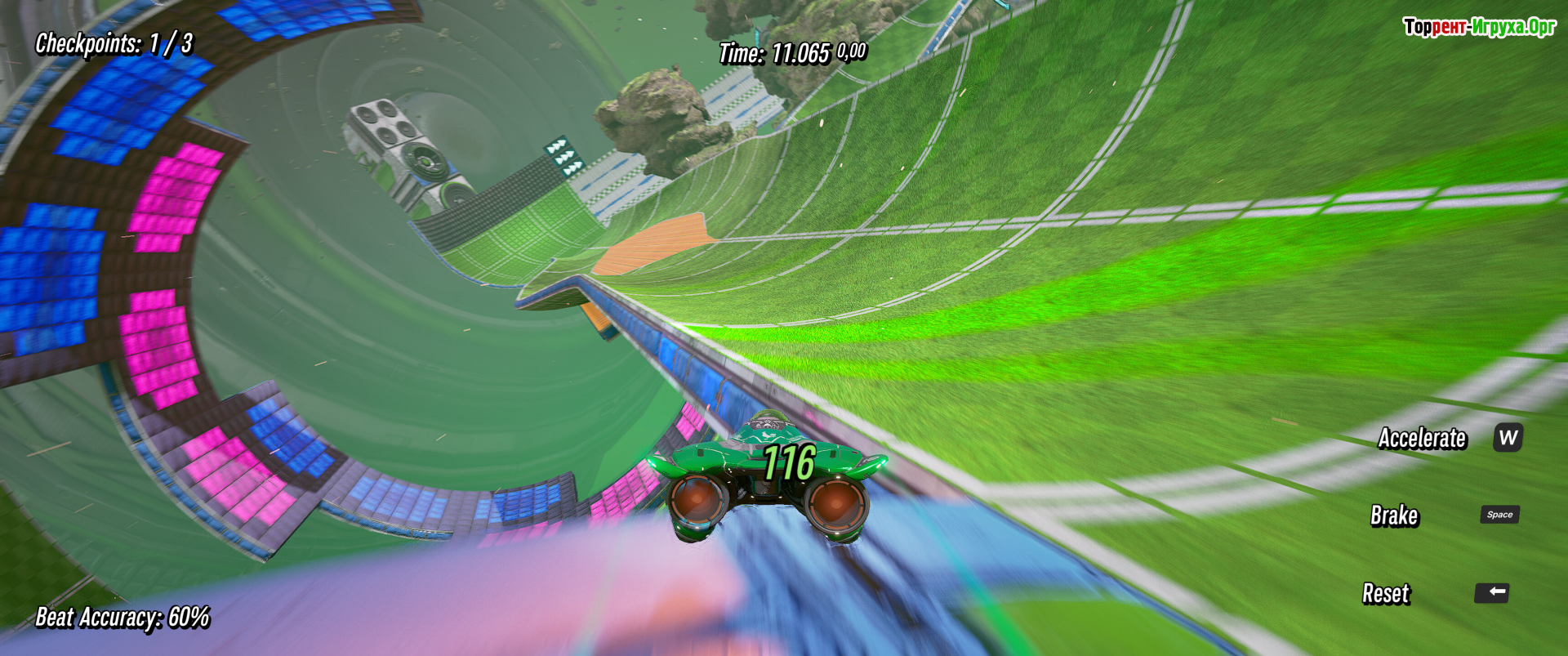 В основе геймплея лежит нажатие клавиш в такт музыкальному мотиву. Правильное попадание в ритм увеличивает скорость и помогает удерживать темп, тогда как ошибки снижают ускорение. Каждая трасса адаптируется под музыкальный рисунок, что требует от игрока концентрации и хорошо развитого чувства ритма, делая гонки особенно захватывающими и требующими внимания.