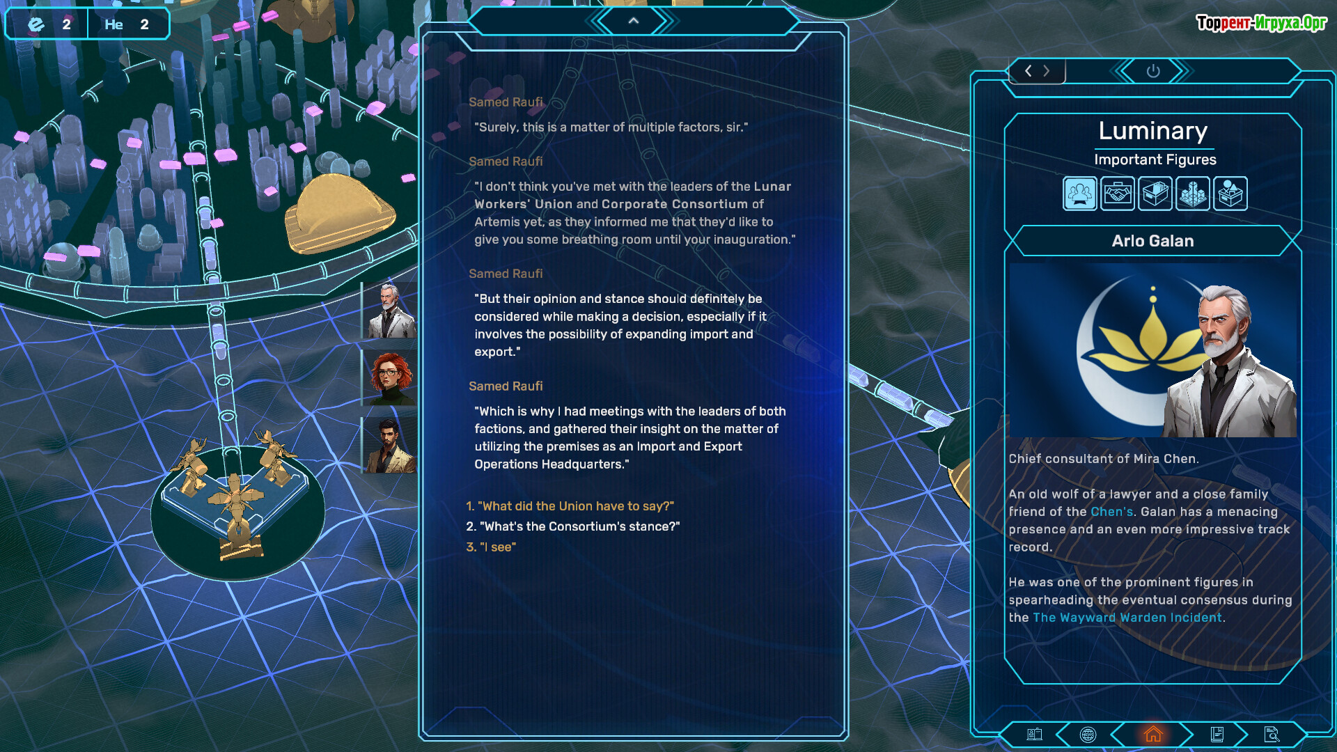 Каждое ваше решение — от распределения ресурсов до взаимодействия с различными фракциями — имеет далеко идущие последствия. Выбор между краткосрочной популярностью и долгосрочной стабильностью влияет на политический ландшафт Артемиса. Одновременно с этим вам предстоит расследовать опасные заговоры и преступления, которые Федерация старается скрыть, что делает будущее лунной колонии и человечества зависимым от ваших действий.