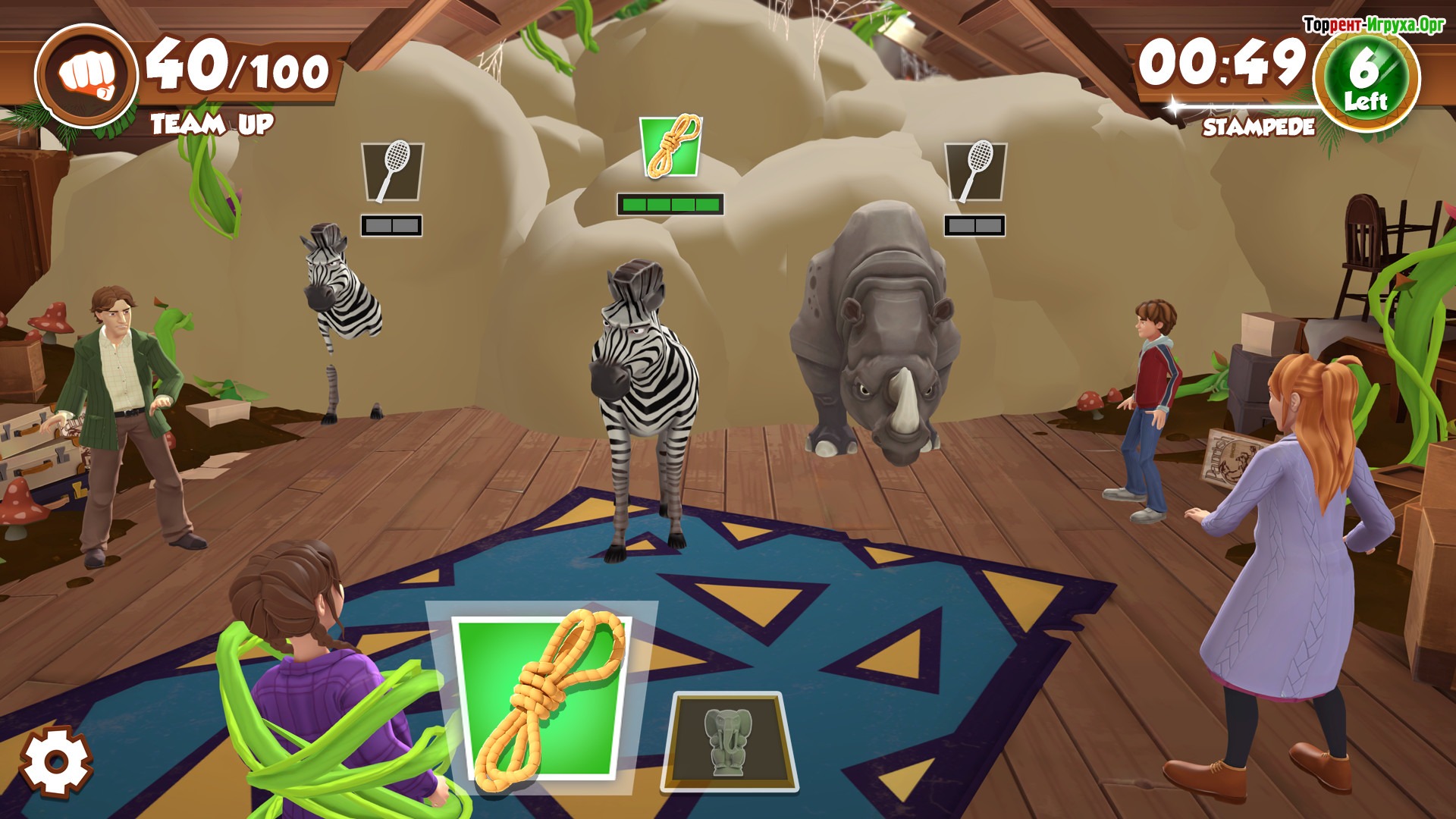 Для успешной борьбы с угрозой Джуманджи игрокам необходимо объединиться и работать в команде, чтобы остановить наступление таинственных джунглей на город. В процессе игры предстоит находить и сочетать разные предметы из тайников, чтобы надёжно запечатать опасность в сундуке. На пути вас встретят фантастические животные — от слонов и носорогов до крокодилов, а также зловещие лианы, пытающиеся поймать героев в ловушку. Такой кооперативный игровой процесс с четырьмя игроками позволяет весело провести время с семьей и друзьями, наслаждаясь духом настоящего приключения.