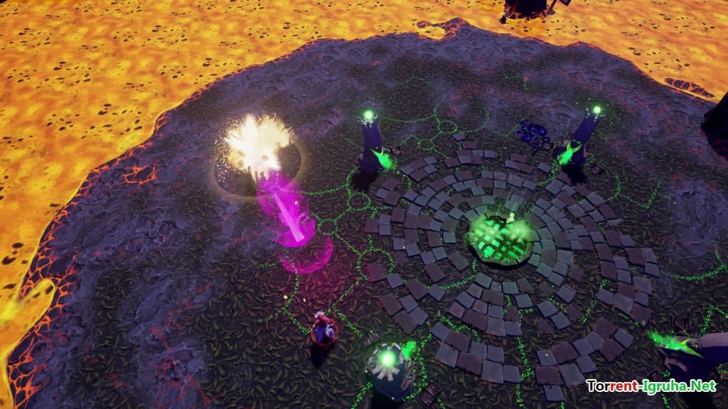Spellsworn — это многопользовательский экшен, посвящённый захватывающим сражениям магов на компактной арене, окружённой кипящей лавой. Чародеи могут передвигаться по лаве, но это приводит к быстрой потере здоровья. Главная задача игрока — уничтожить всех соперников, используя мощные заклинания и тактическое мышление. В игре доступно два режима: каждый против всех и командные бои, каждый из которых по-своему увлекательный и насыщенный напряжёнными моментами.