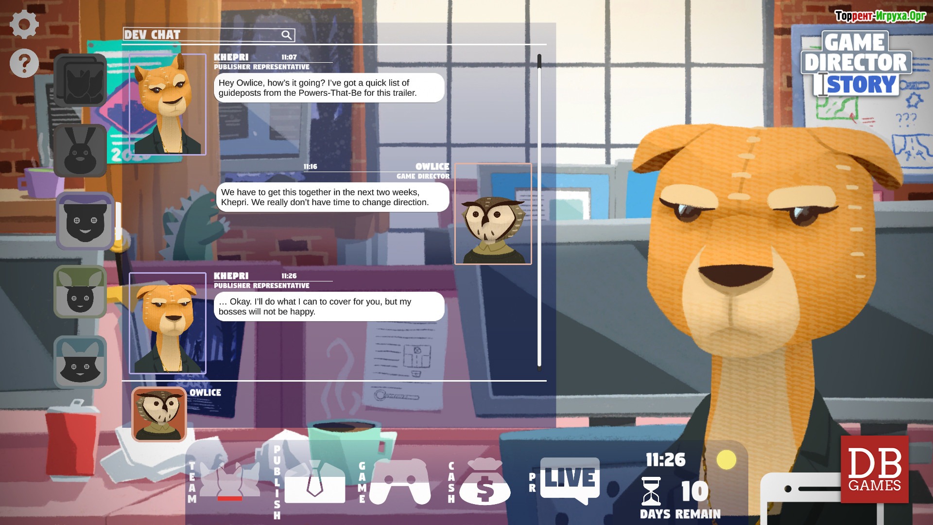 В роли игрового директора вы столкнётесь с разнообразными вызовами, такими как оплата технических долгов, кризисы внутри коллектива, вопросы сексизма и внедрение микротранзакций. Игра предлагает глубоко проработанный повествовательный опыт, основанный на реальных событиях из индустрии, что поможет прочувствовать все взлёты и падения разработки игр. Постоянное взаимодействие с командой через чат усиливает погружение и требует стратегического мышления.