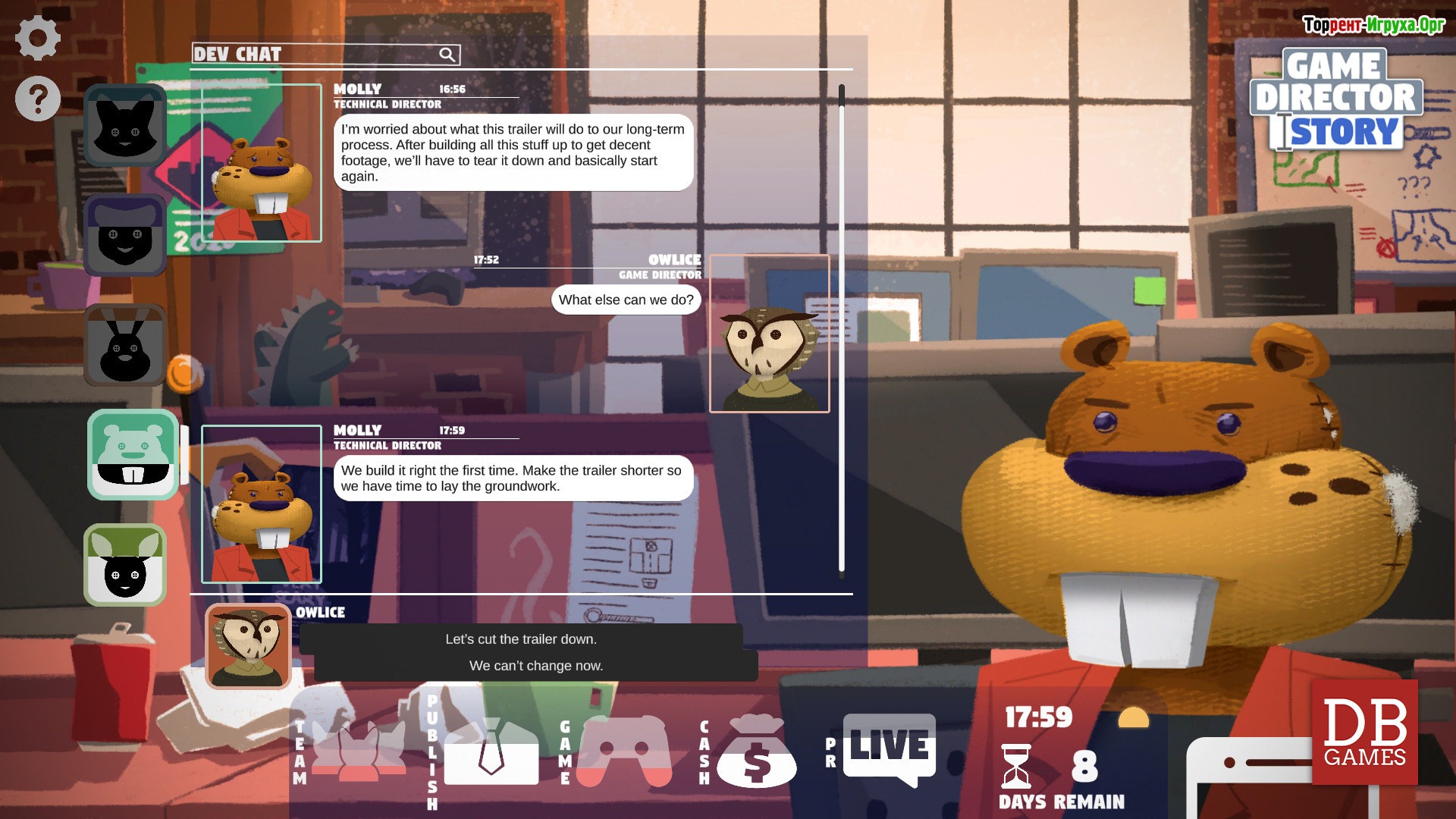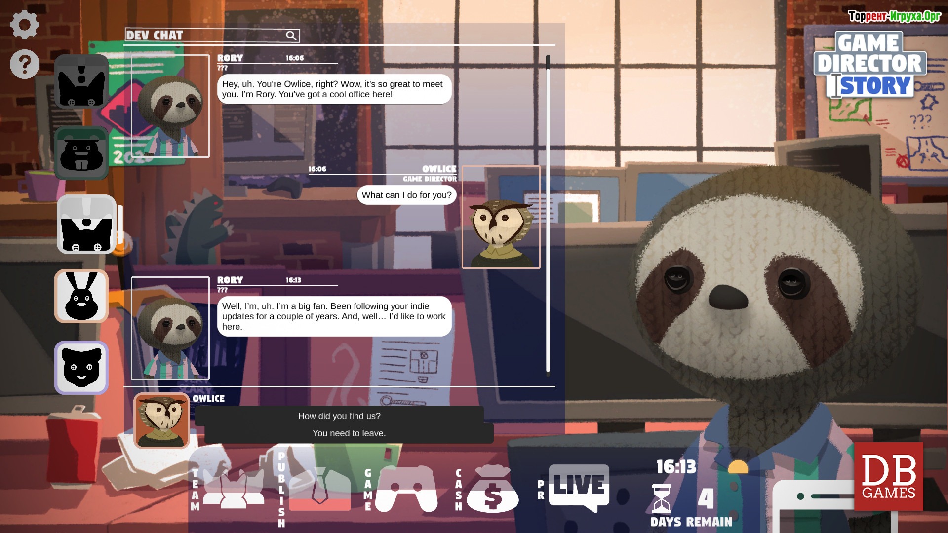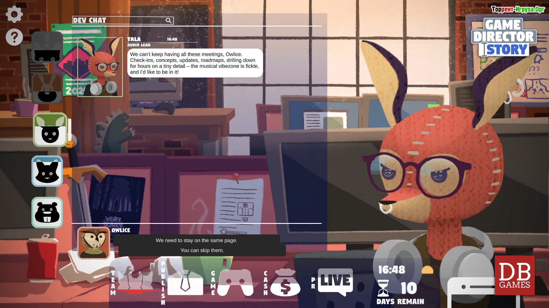 Весь сюжет Game Director Story наполнен сатирой и чёрным юмором, придающими особую остроту происходящему. Вас ждёт знакомство с яркими персонажами и динамичное развитие событий, где каждое решение влияет на судьбу команды и конечный результат проекта. Если вы хотите испытать себя в роли руководителя игровой студии и пройти весь путь от идеи до выпуска игры, эта игра для вас.