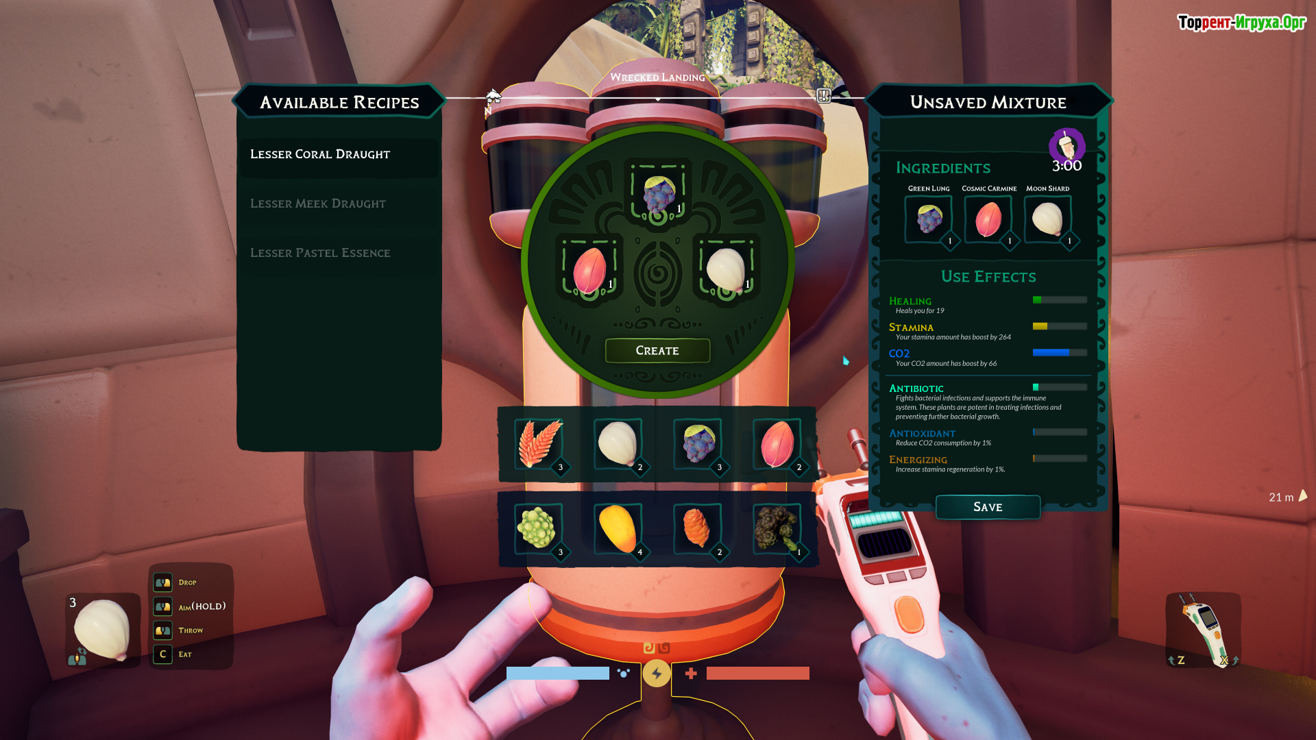 Ключевым элементом геймплея становится выращивание и изучение растений. Игрок исследует флору, превращая незнакомые виды в источники пищи, лекарств и кислорода для дыхания. Внимательное наблюдение и экспериментирование с растениями дают возможность открыть новые виды и создать устойчивую систему жизнеобеспечения, которая критически важна для выживания в этом сложном мире.