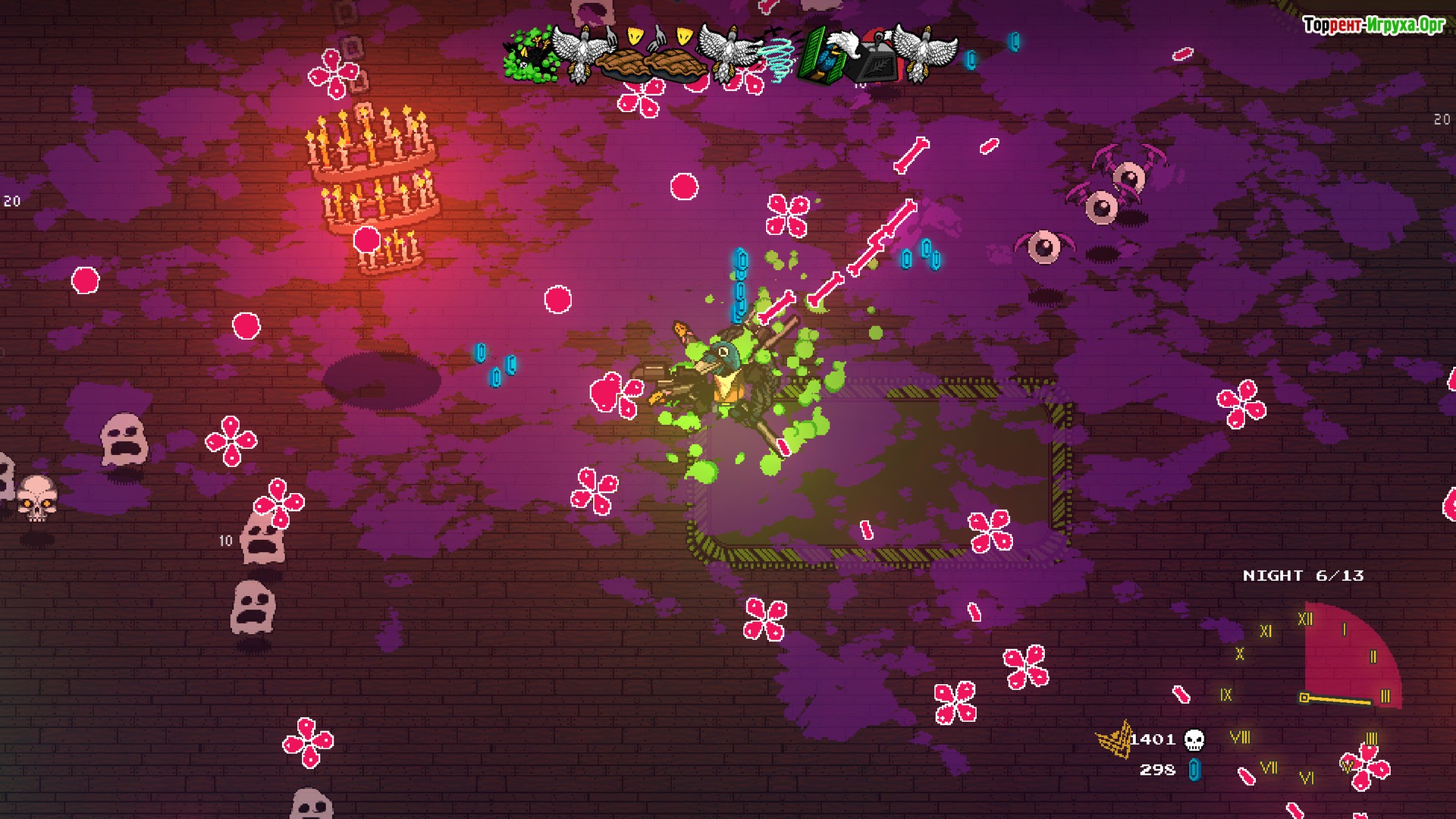 Raven Estate — захватывающий рогалик, который погружает игрока в напряжённое приключение с множеством сражений против демонов, монстров и различных существ. Ваша главная задача — выжить в течение ночи, максимально эффективно используя новые возможности и тактические приёмы. Для начала предлагаем скачать игру Raven Estate и окунуться в динамичный игровой процесс, который подарит много ярких впечатлений и поможет получить настоящее удовольствие от каждой минуты на ПК.