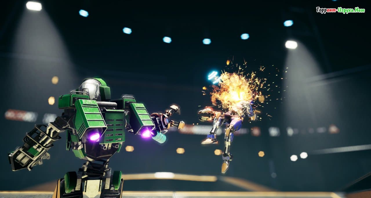 Отдельно стоит отметить атмосферу игры, которую поддерживает энергичный электронный саундтрек, идеально подходящий для напряжённых боёв между роботами в этом высокотехнологичном мире.