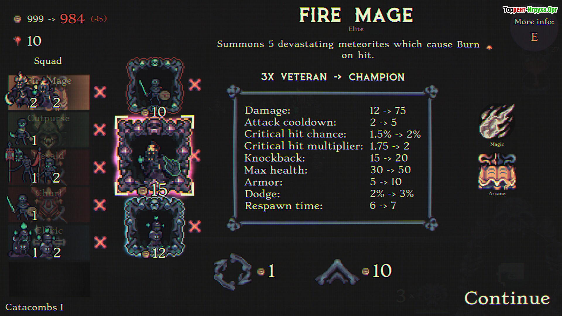 В процессе игры формирование армии происходит прямо во время прохождения уровней — новые юниты открывают разнообразные тактические возможности. Повторный найм усиливает бойцов, преобразуя их в более мощные варианты с уникальными эффектами. Взаимодействие между типами юнитов и найденными предметами создаёт выгодные комбинации, влияющие на эффективность всего отряда.