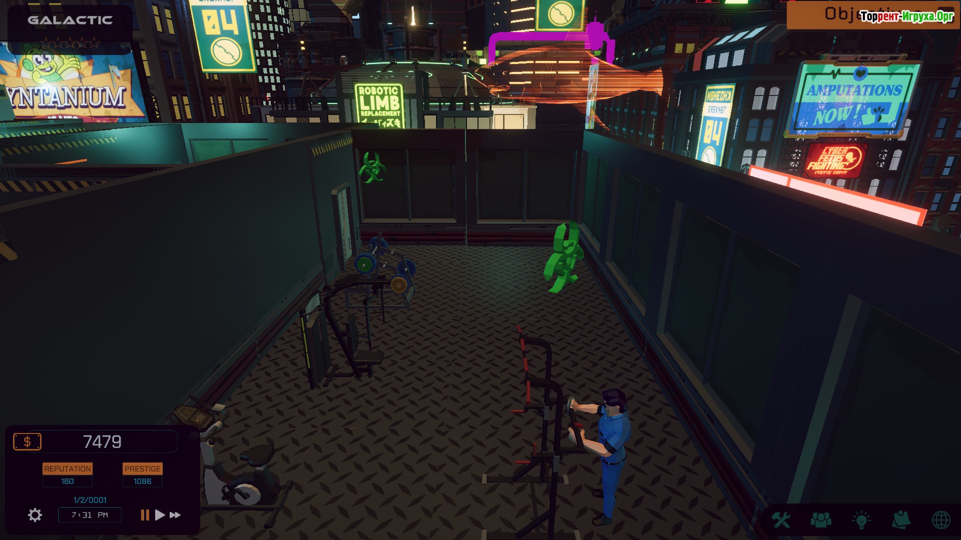 Galactic Gym: Fitness Center Management предлагает вам стать управляющим самого востребованного фитнес-центра во всей галактике. В этой игре вам предстоит контролировать работу тренажерного зала, чтобы удовлетворить потребности разнообразных межзвёздных клиентов. Именно от вашего умения управлять зависит успех и репутация вашего центра.