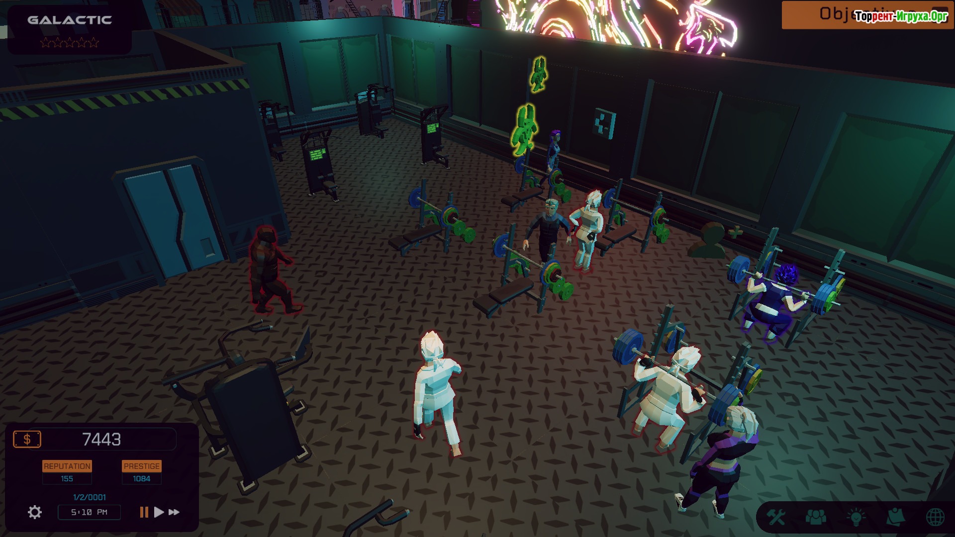 Игровой процесс включает использование различного оборудования, набор квалифицированного персонала и организацию множества упражнений для посетителей. Ваши решения определят, каким будет тренажерный зал, и насколько эффективно он будет работать. Важно грамотно распределять ресурсы и выбирать тренажеры, чтобы создать место для занятий, о котором мечтают все спортсмены космической федерации.