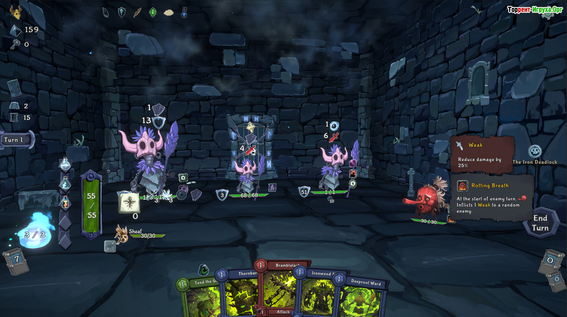 Основу геймплея составляют сражения с использованием колоды карт, которая постоянно меняется и адаптируется. Богатый набор эффектов и комбинаций позволяет создавать мощные связки, усиливать способности и обращаться с неожиданными тактиками. Противники ведут себя по-разному и требуют гибкой стратегии — постоянное переосмысление подхода к боям становится ключом к успеху.