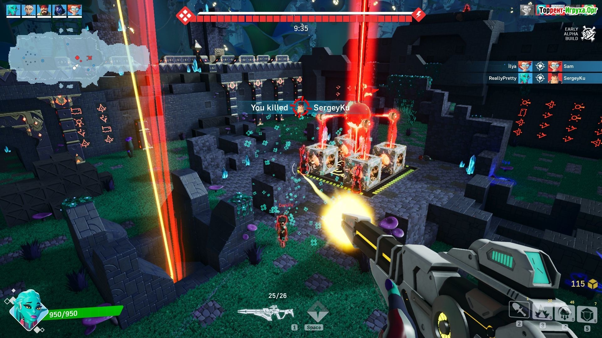 Бои в игре проходят в режиме реального времени, требуя от вас быстрой реакции и командной работы. Важную роль играет тактика, особенно учитывая полную разрушаемость окружающей среды. Арена состоит из кубов, которые можно уничтожить, чтобы убрать препятствия или найти кратчайший путь к нужной точке. Однако разрушение кубов занимает время, поэтому лучше использовать зоны с активными боестолкновениями. Такой подход добавляет глубину и стратегию в каждое сражение.