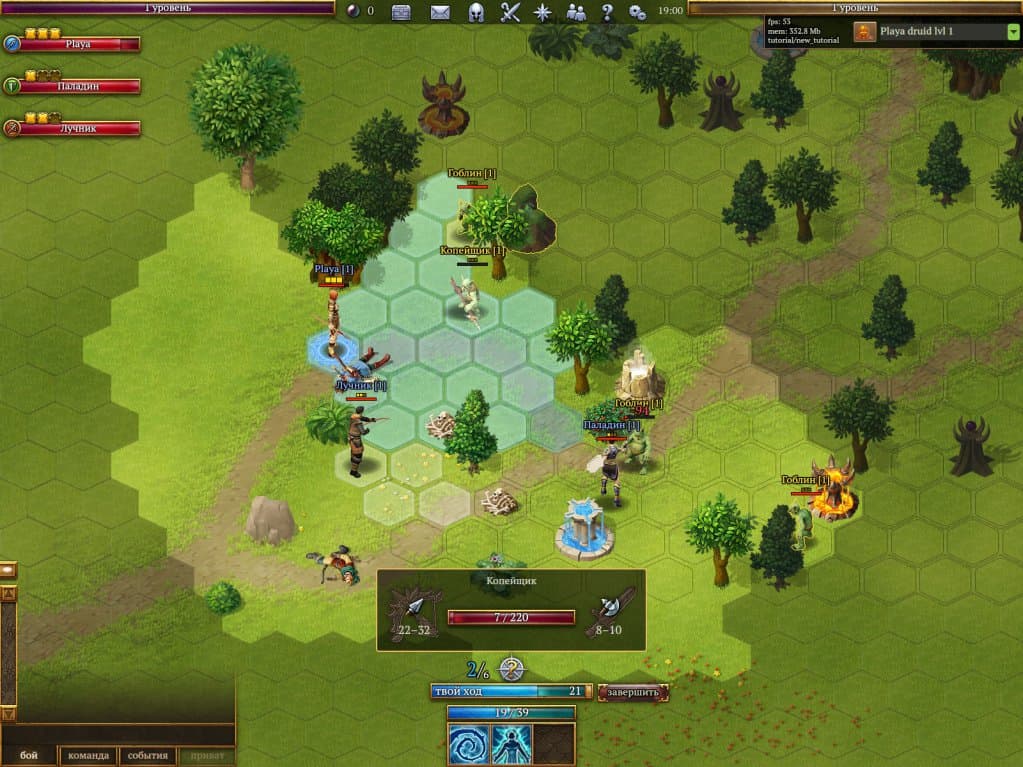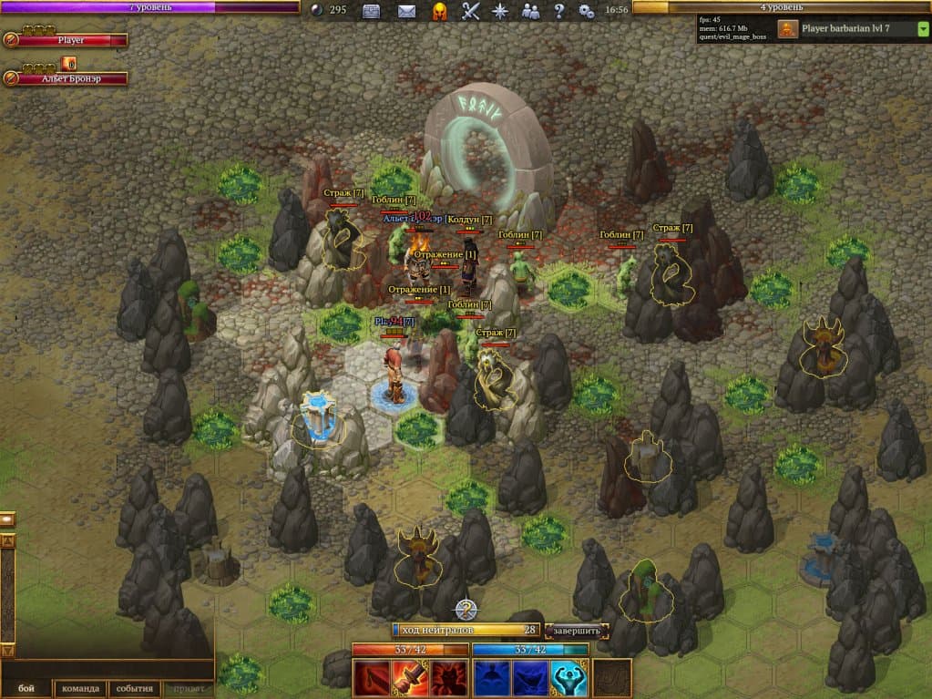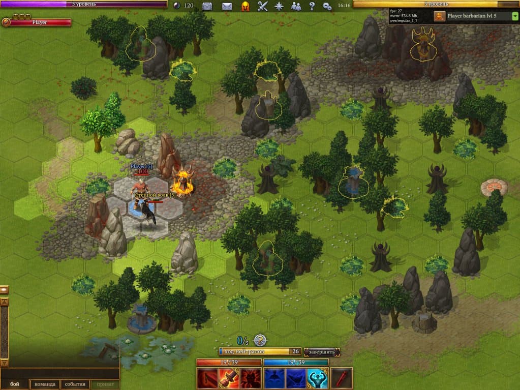 Дополнительный тактический слой в Terra Magica создают особенности ландшафта, которые влияют на ход сражений. Например, трясина замедляет движение персонажа, ядовитая лужа наносит отравление, а частокол требует дополнительных ходов для обхода. В совокупности эти элементы делают каждую битву сложной и интересной. Также стоит отметить яркую рисованную графику, которая дополняет общее впечатление от игры.