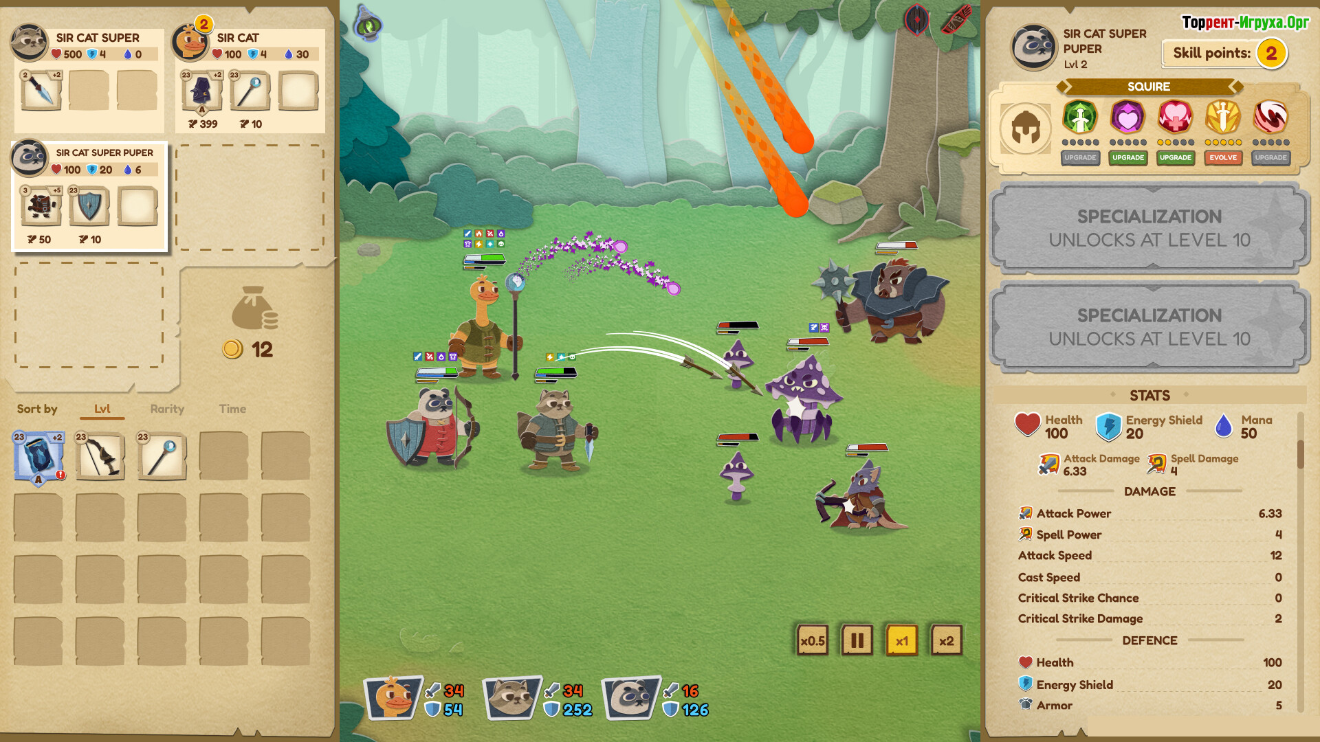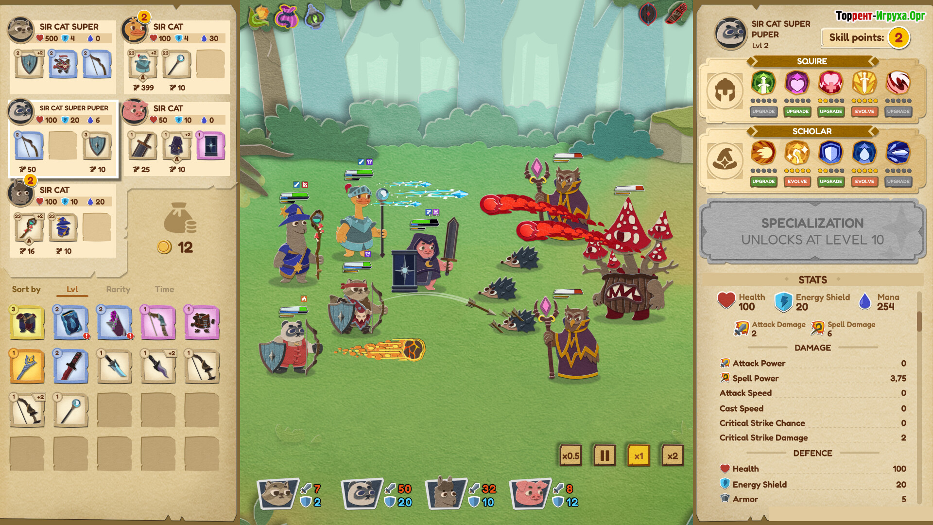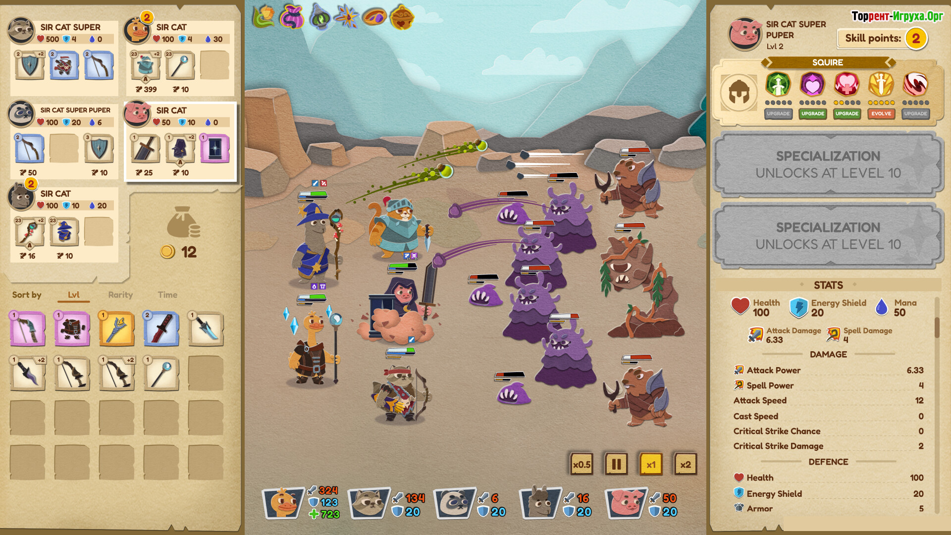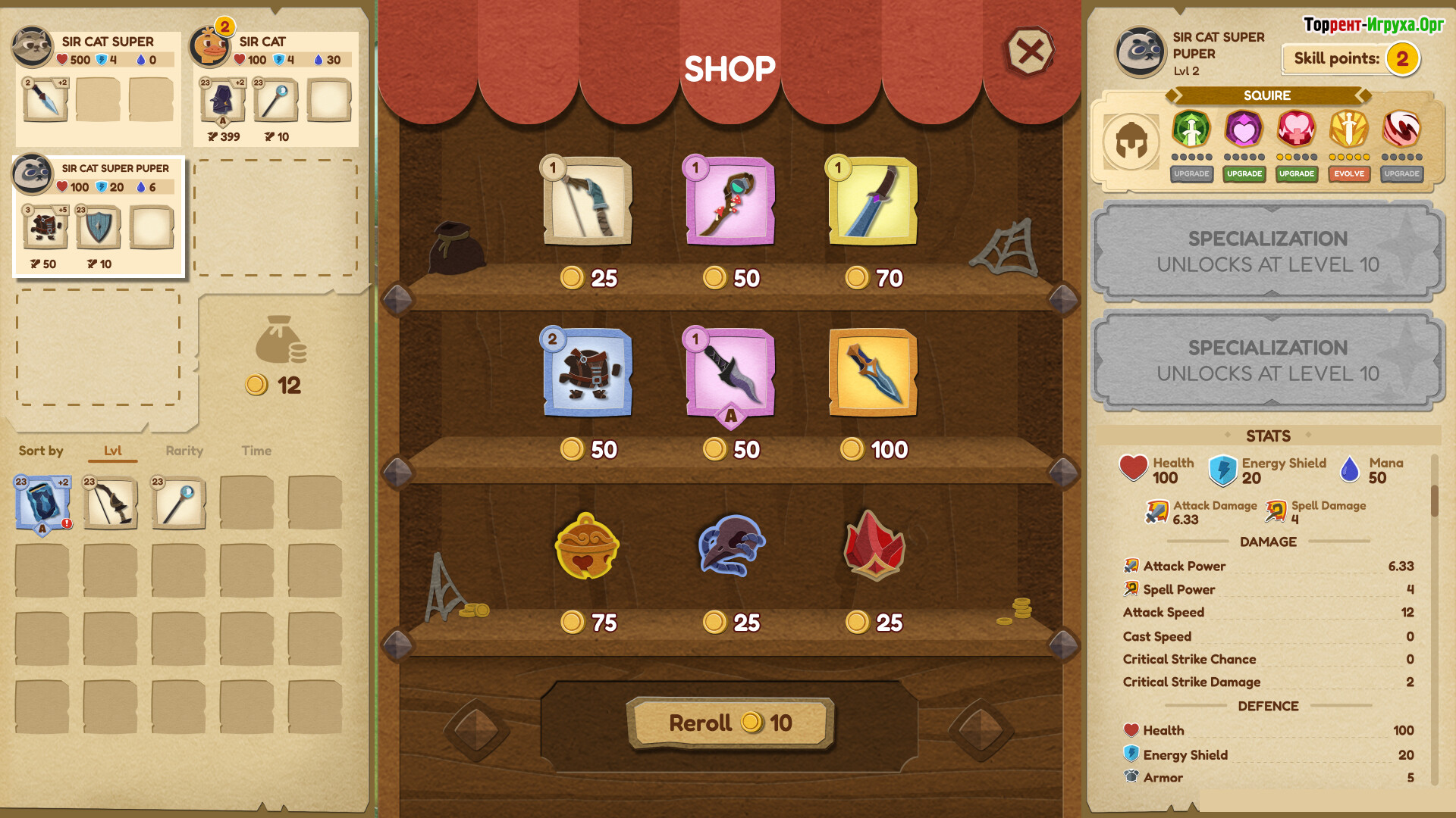 Прокачка и лут играют ключевую роль в Paper Tactics, так как предметы не только усиливают персонажей, но и открывают новые возможности для раскрытия их потенциала. Собирая экипировку и специализации, игрок формирует уникальные билды, которые позволяют менять подход к боям при каждом запуске, поддерживая высокий уровень стратегического погружения.