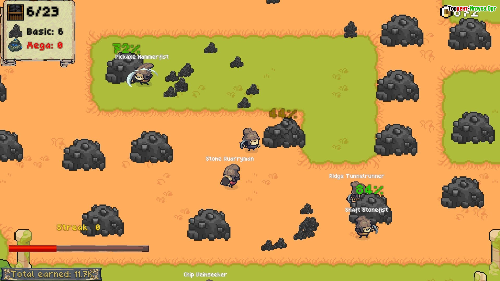 Вначале весь игровой процесс сосредоточен на ручной добыче ресурсов. Постепенно появляется шанс продавать сырьё и инвестировать заработанные деньги в улучшения, что повышает скорость работы и силу ударов. Такие обновления делают добычу более эффективной, позволяя быстрее получать прибыль и открывать новые пути для развития игрового процесса.