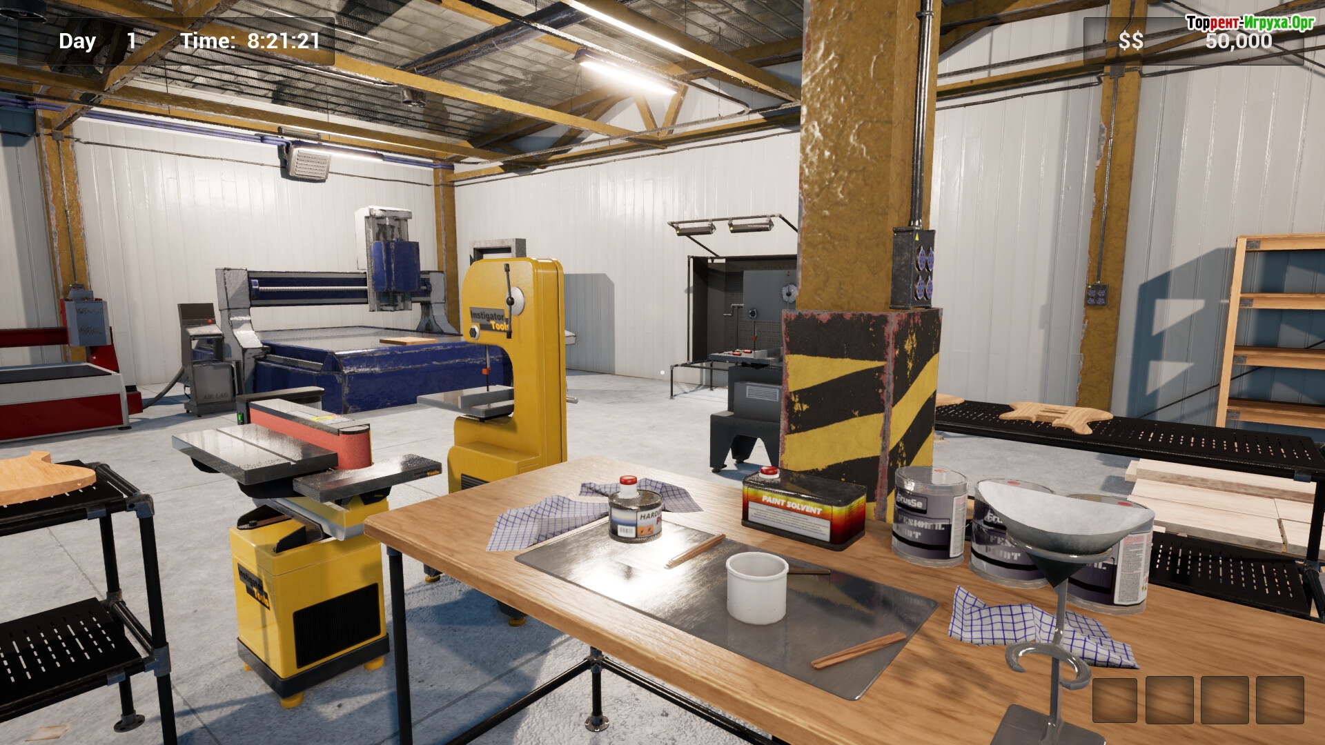 Игрокам предстоит начать с заброшенного бара, который со временем превратится в уютный магазин гитар. Для развития мастерской необходимо приобретать разнообразное оборудование, включая фрезерные станки и покрасочные устройства, а также обустраивать пространство мебелью. Такая постепенная модернизация позволит наладить эффективный процесс изготовления музыкальных инструментов и расширить производство.