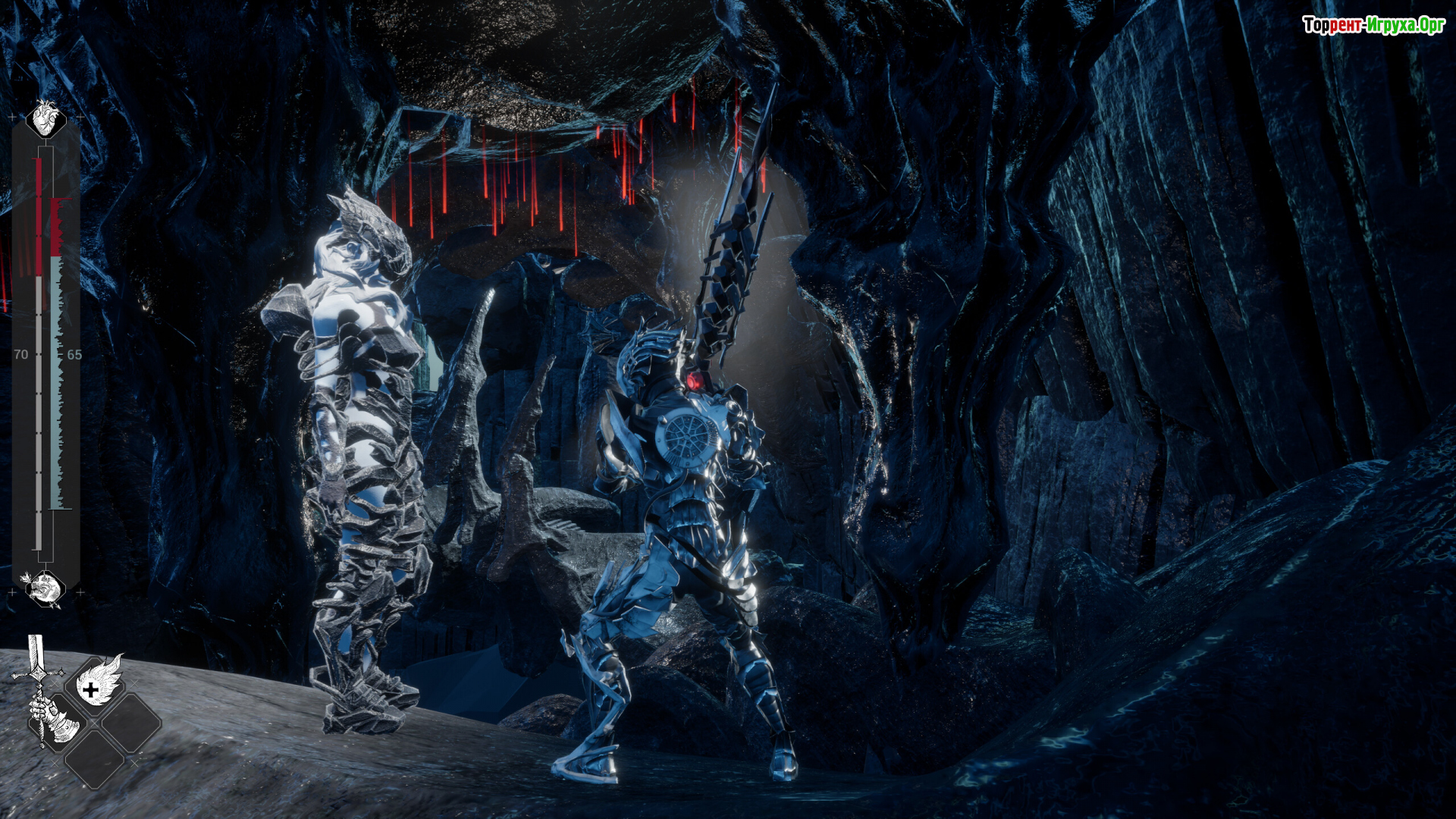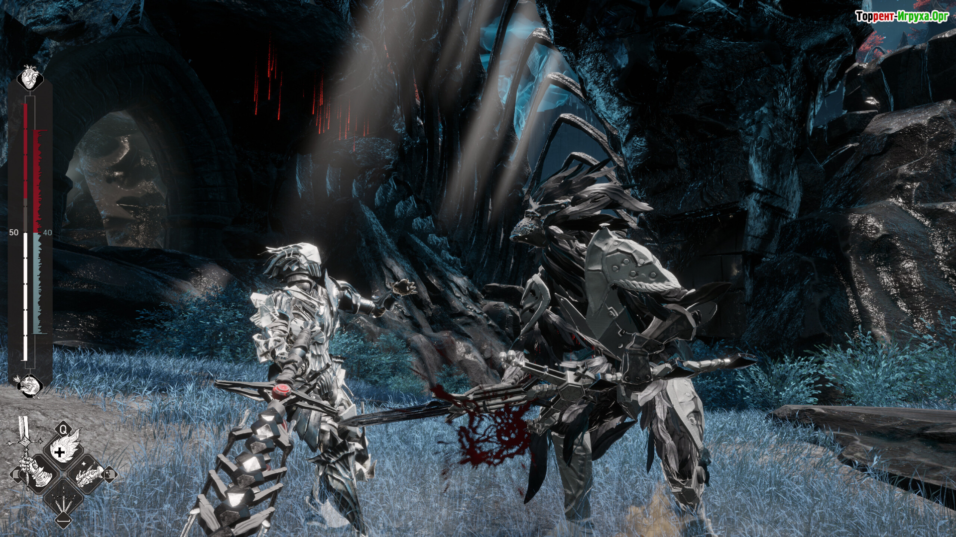Арсенал меняется на лету: меч, коса и кинжал морфятся в разные боевые классы с собственными плюсами и контрами против типов врагов. Противники владеют схожими возможностями, поэтому промедление карается мгновенно. Боссы — сложные личности, вступающие в конфликты друг с другом; выбор — сокрушить их или искать хрупкие союзы, рискуя остаться один на один с голодным дрейнкором.
