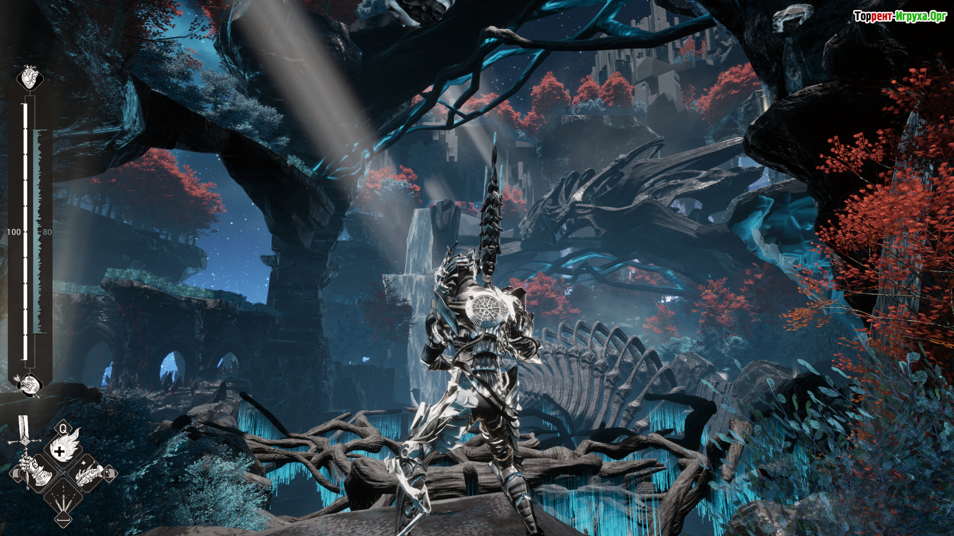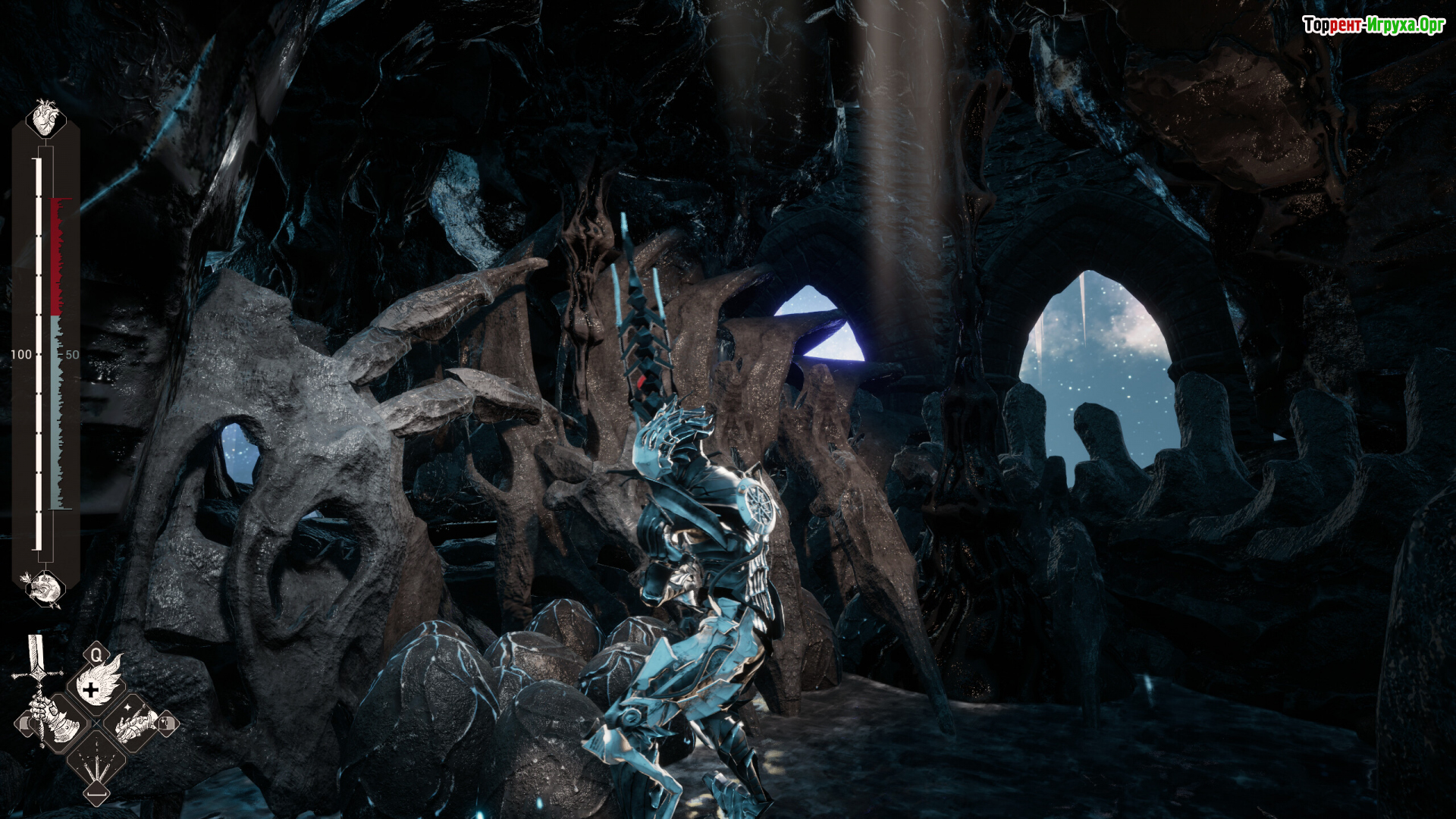 Mercy Incore — это слэшер о падшем рыцаре, чья жизнь держится на техно-ядре, питающемся душами врагов. Когда буря разорвала Надмирье и утащила отряд в зеркальное Техно-измерение, Мурселаго очнулся среди сталактитовых островов из металла и света. Его старый доспех сменился собранным из мусора гиром, а милосердие стало роскошью, которую нельзя себе позволить.