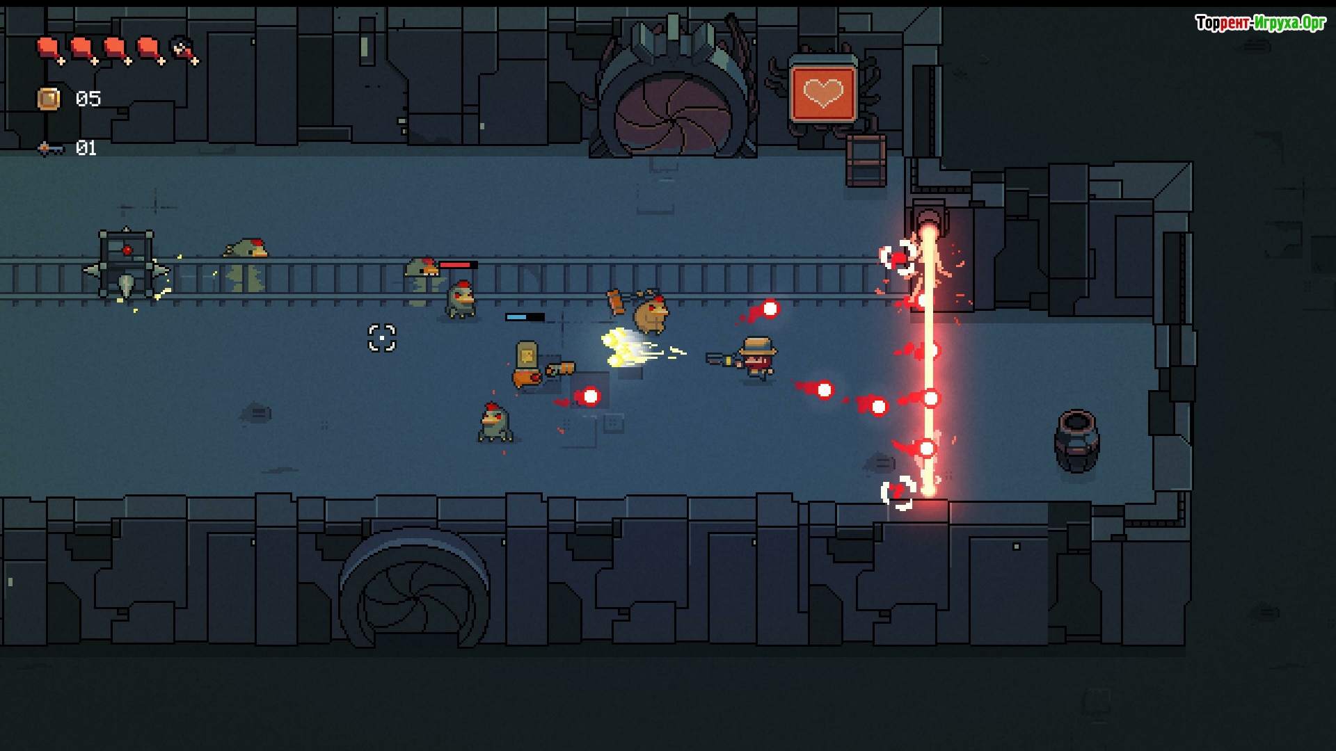 В этом проекте игроку предстоит начать приключение на огромном космическом корабле, где нужно пройти через разнообразные комнаты и одолеть разношерстных врагов. Необходимо выжить и очистить каждый сектор, однако на пути будут мешать одержимые цыплята, создавая дополнительное напряжение. Каждый уровень предлагает уникальные типы комнат, включая медицинский пункт, магазин или сокровищницу, что добавляет разнообразия игровому процессу.