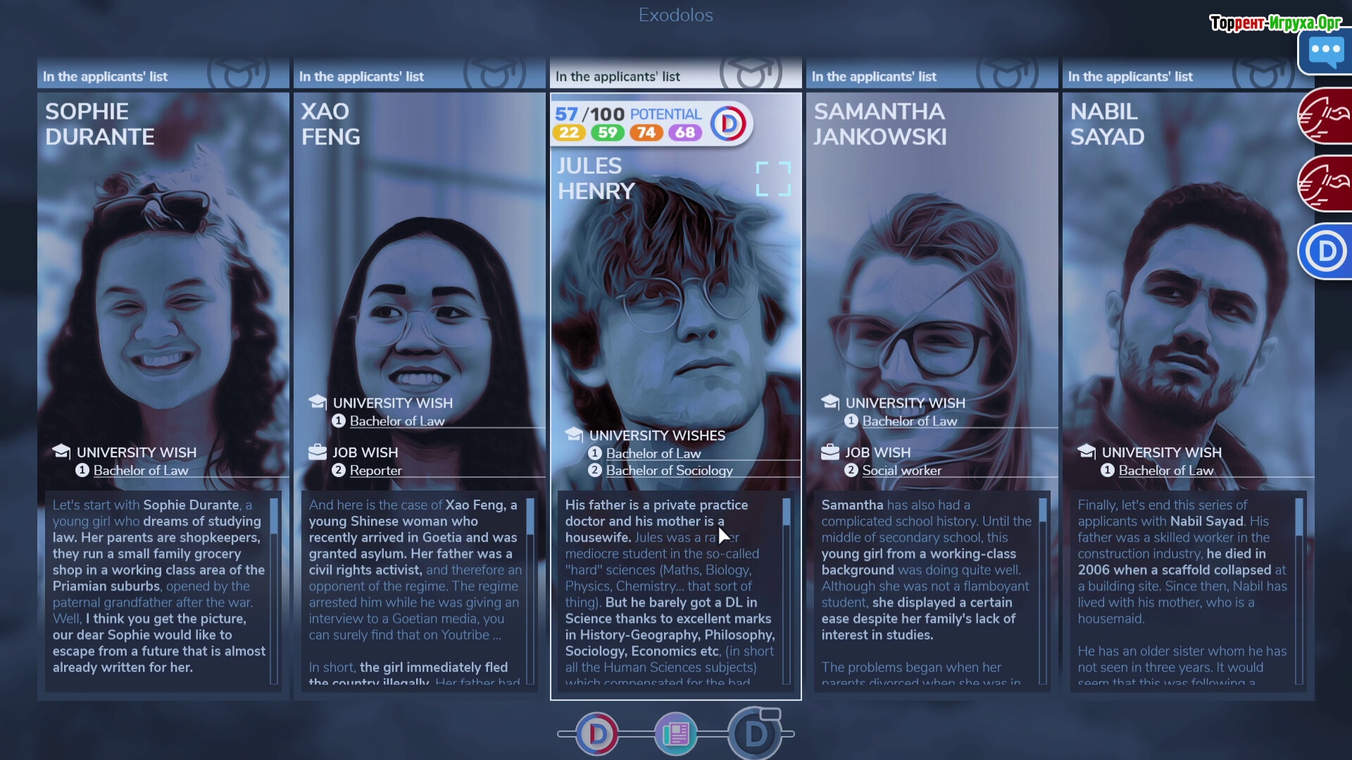 Игра предлагает сбор и тщательную оценку кандидатов, а также доступ к конфиденциальной информации, что позволяет глубже понять внутренние процессы общества. Общение с куратором и просмотр актуальных новостей помогает оставаться в курсе событий и принимать правильные решения. Этот проект от разработчика Dolos Incorporated предлагает тонкую смесь управления и повествования, которая обусловлена задачей создать идеальное общество с помощью современных технологий.