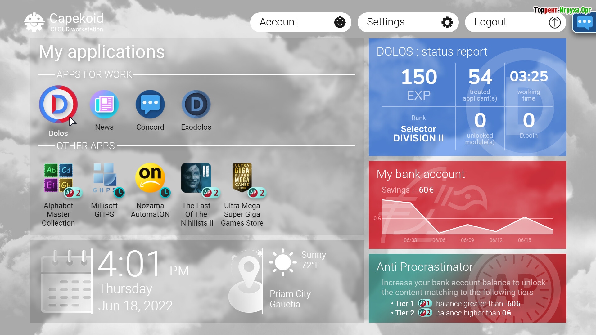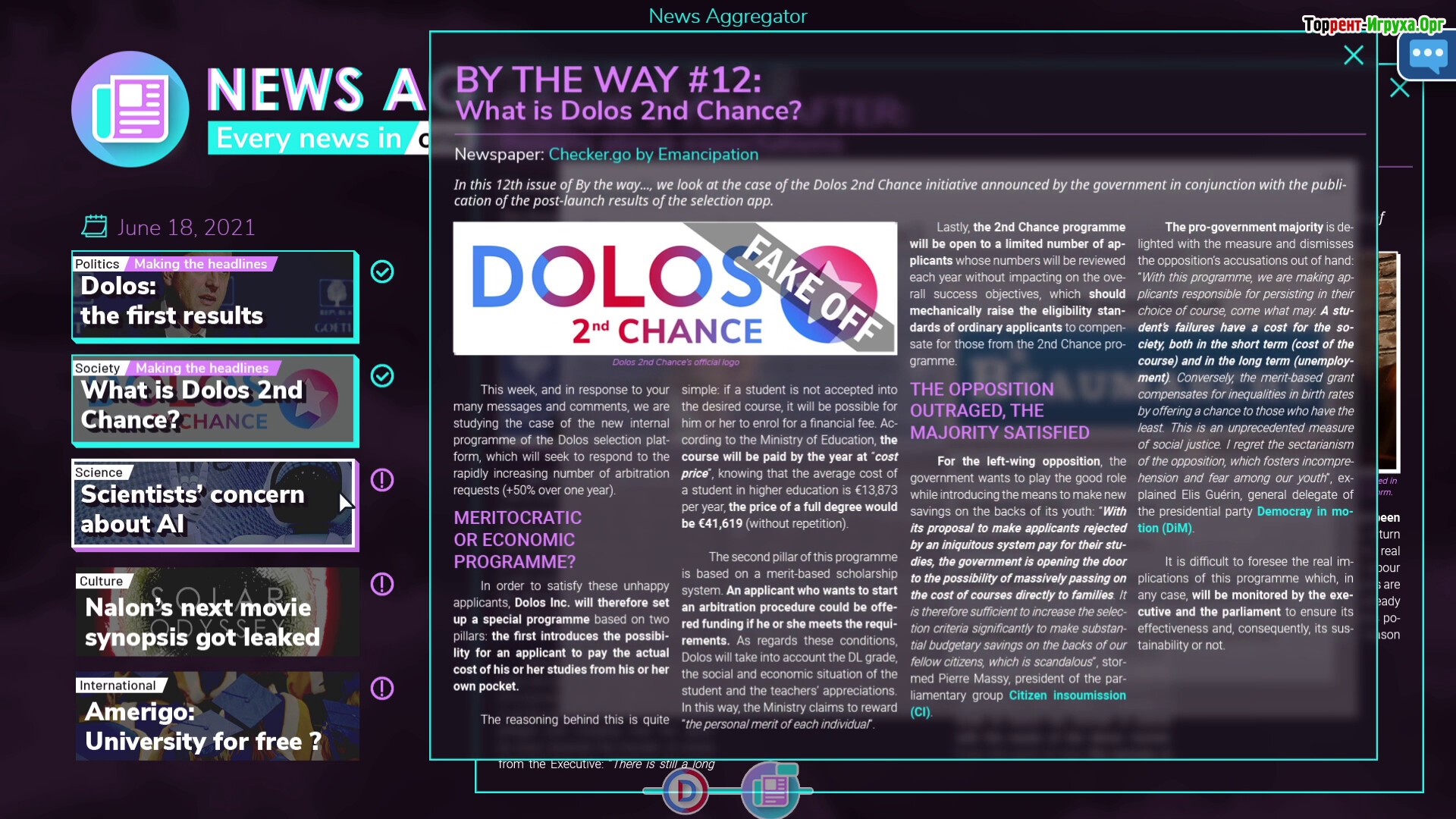 События игры разворачиваются на фоне тяжелого экономического кризиса и массовой безработицы. Правительство Гаэтии запускает специальную программу, которая координирует работу и обучает соискателей. Управлением проекта занимается молодая фирма Dolos Incorporated, призванная стать основой нового, совершенного общества. Интересно, что ИИ способен оценивать потенциал каждого человека, что открывает большие возможности для развития. Если хотите испытать свои навыки стратегического менеджмента, скачайте DOLOS и погрузитесь в атмосферу игры на ПК.