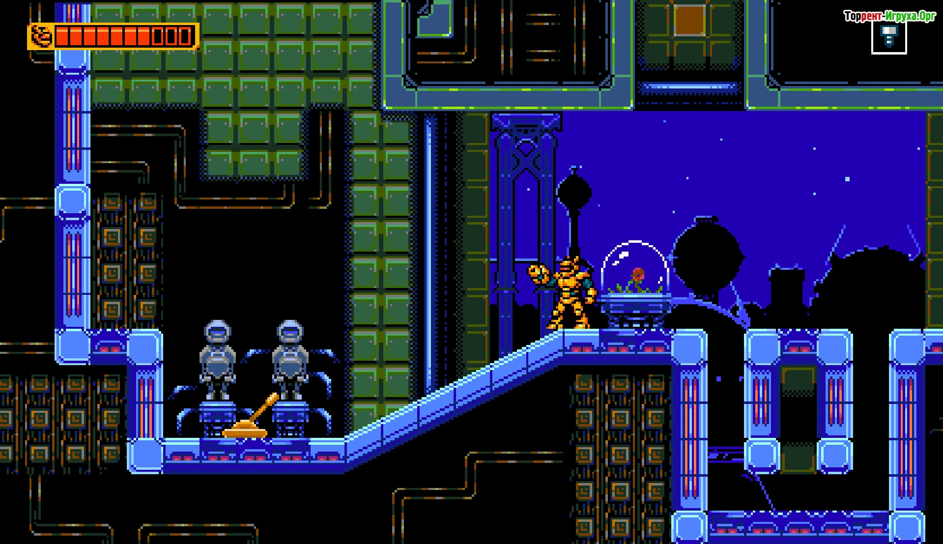 Deathchron отличается 8-битной графикой, объединяющей классические элементы платформера с возможностью управления мехом. Вас ждут разнообразные локации для исследования и масштабные сражения с огромными боссами, что делает игровой процесс насыщенным и захватывающим. Данная игра заслуживает внимания поклонников жанра и тех, кто ищет нестандартные игровые решения.